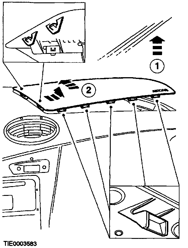 - 2.Lift the cover moving it towards the windshield to disengage the retaining clips.