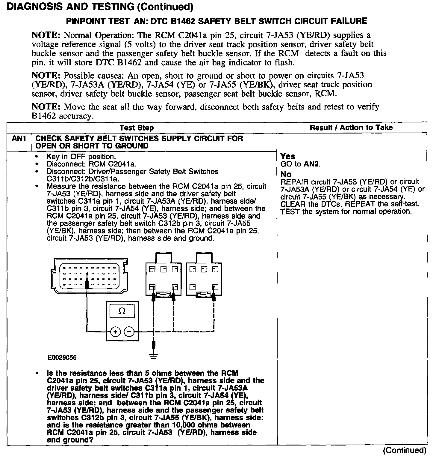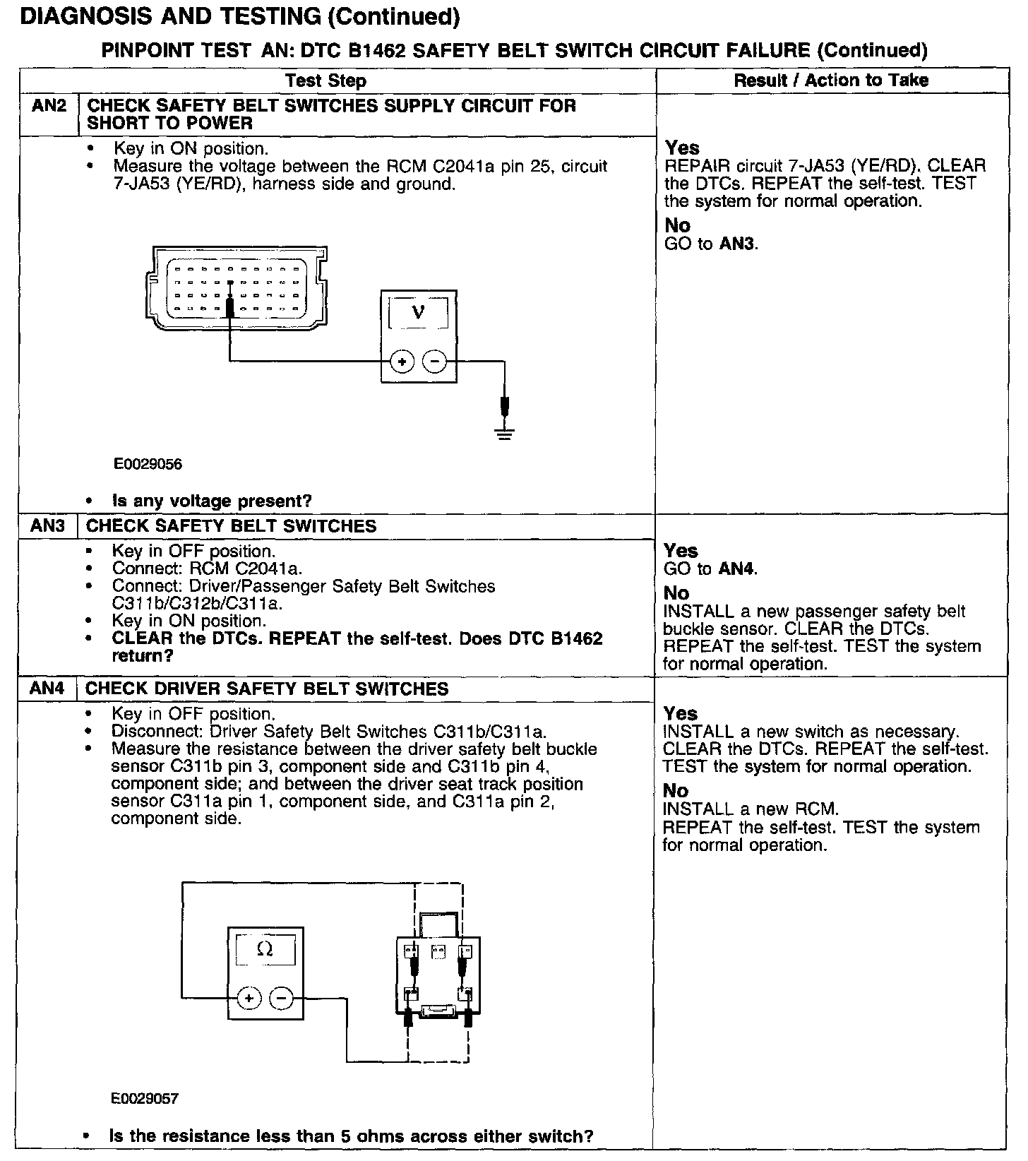 PINPOINT TEST AN: DTC B1462 SAFETY BELT SWITCH CIRCUIT FAILURE