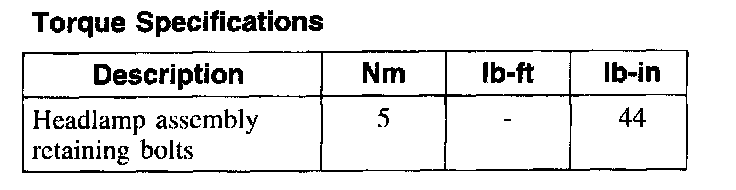 Torque Specifications: