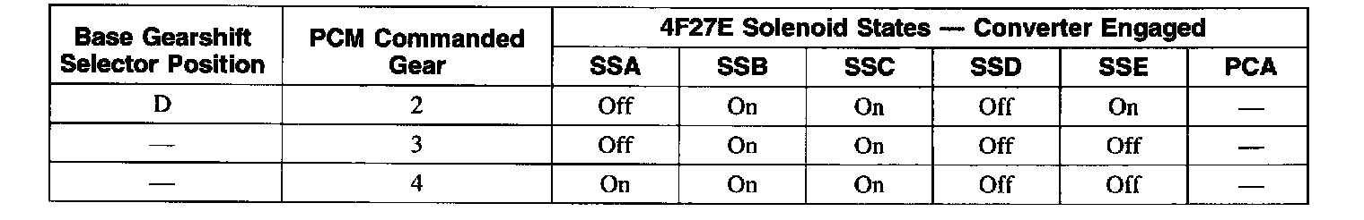 Solenoid Operation Chart-Converter Engaged