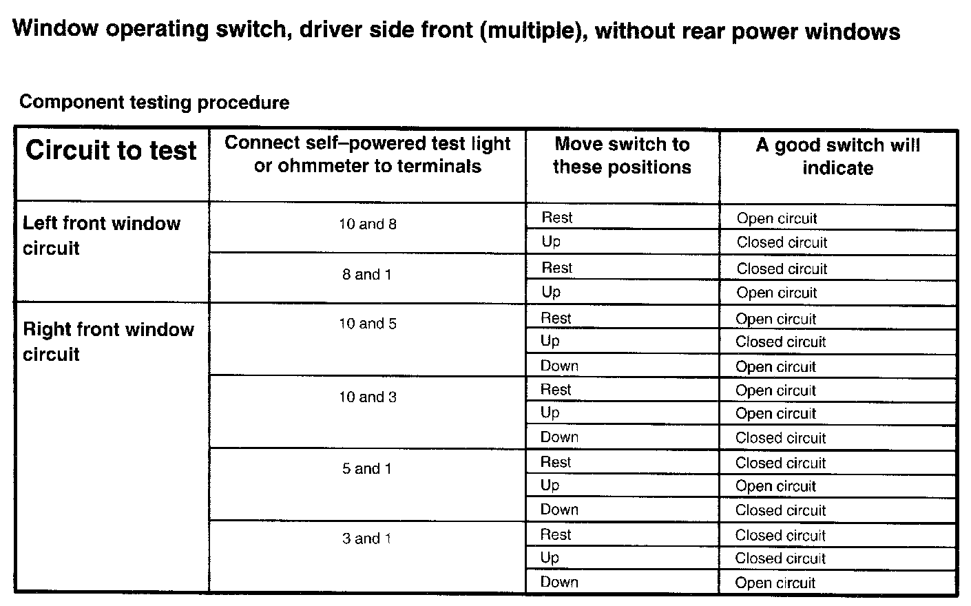 Driver Side Front, Without Rear Power Windows