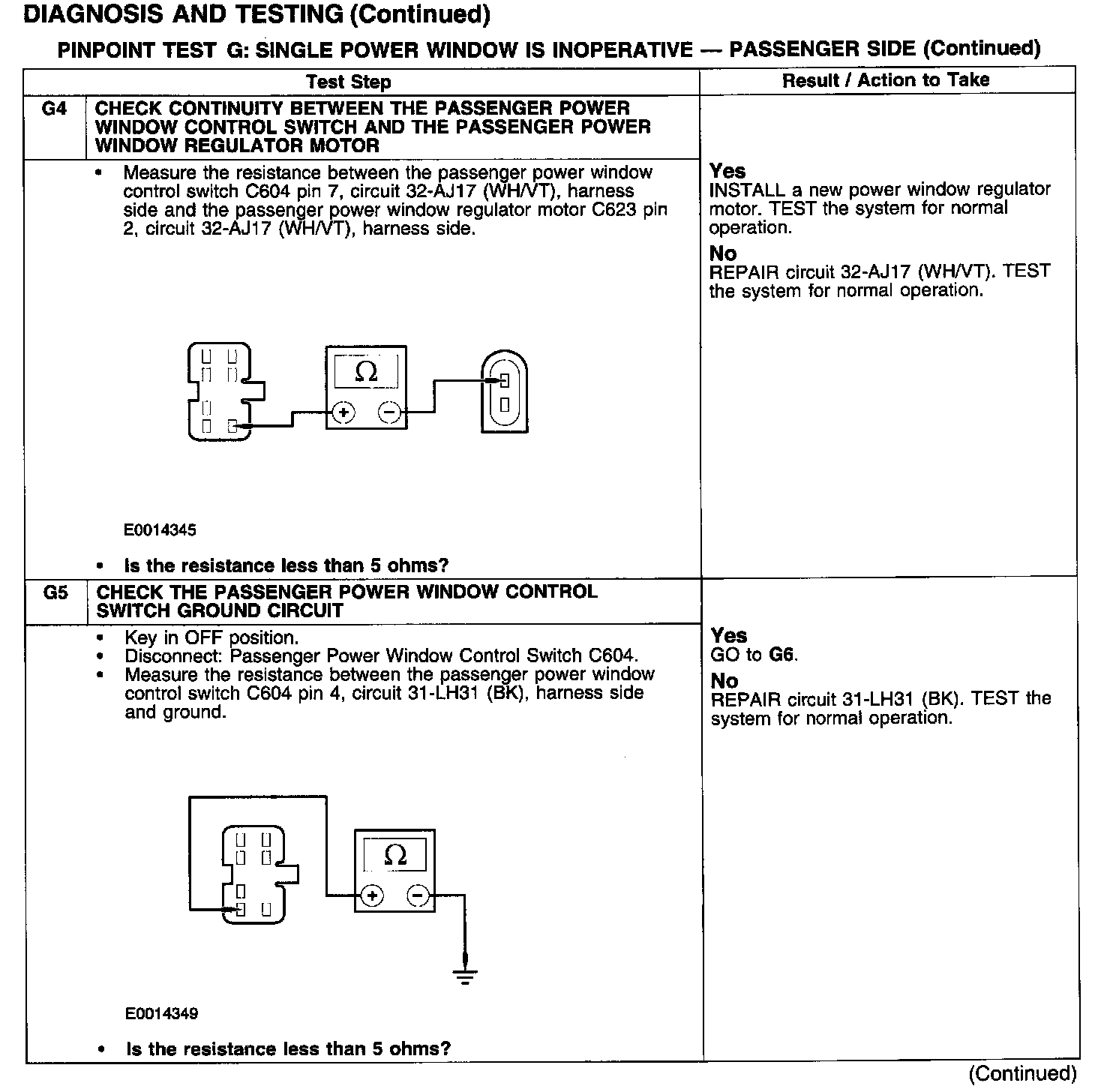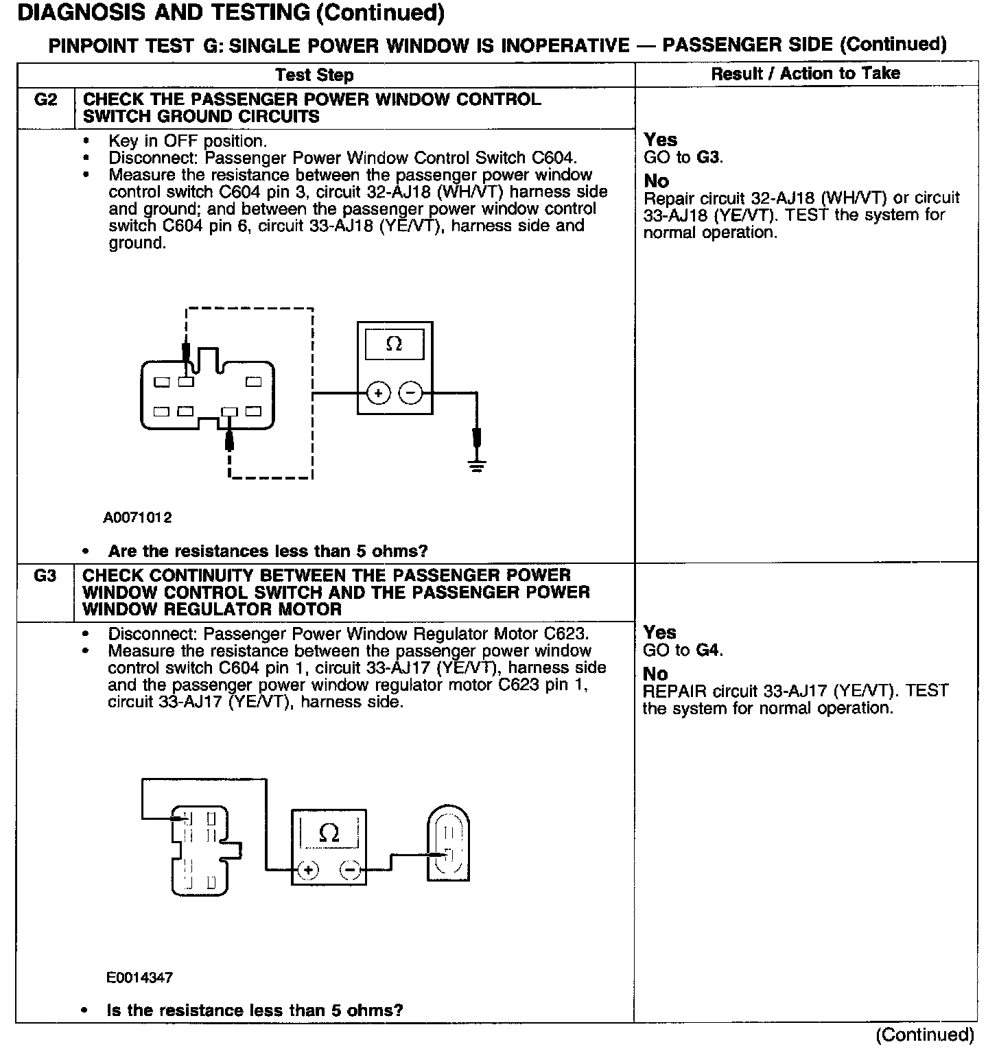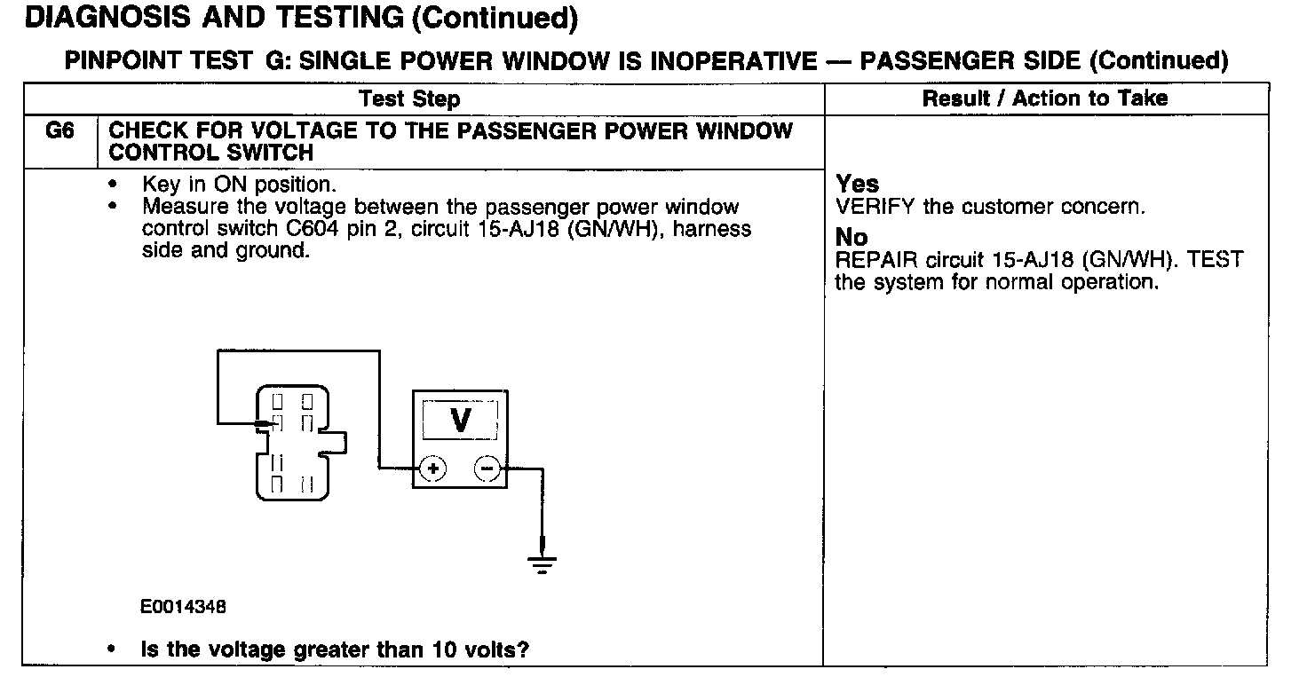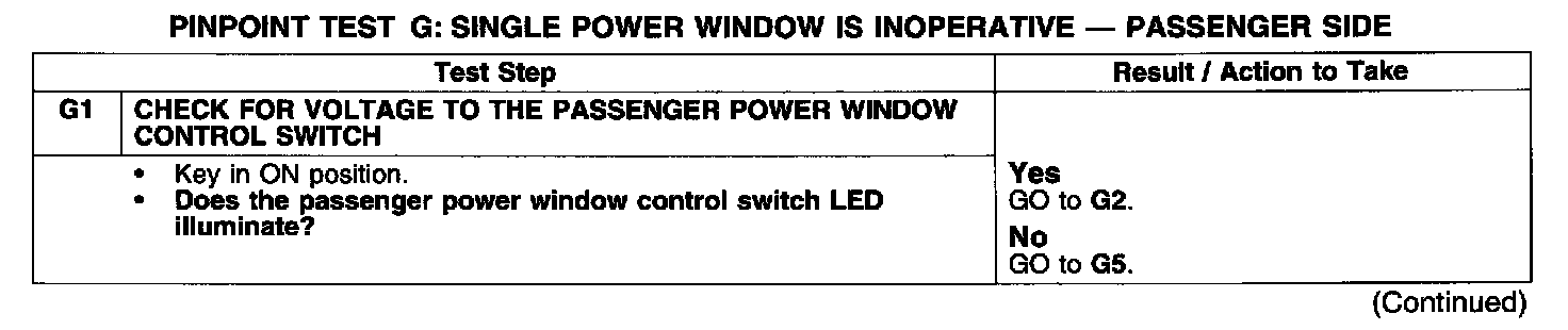 PINPOINT TEST G: SINGLE POWER WINDOW IS INOPERATIVE - PASSENGER SIDE