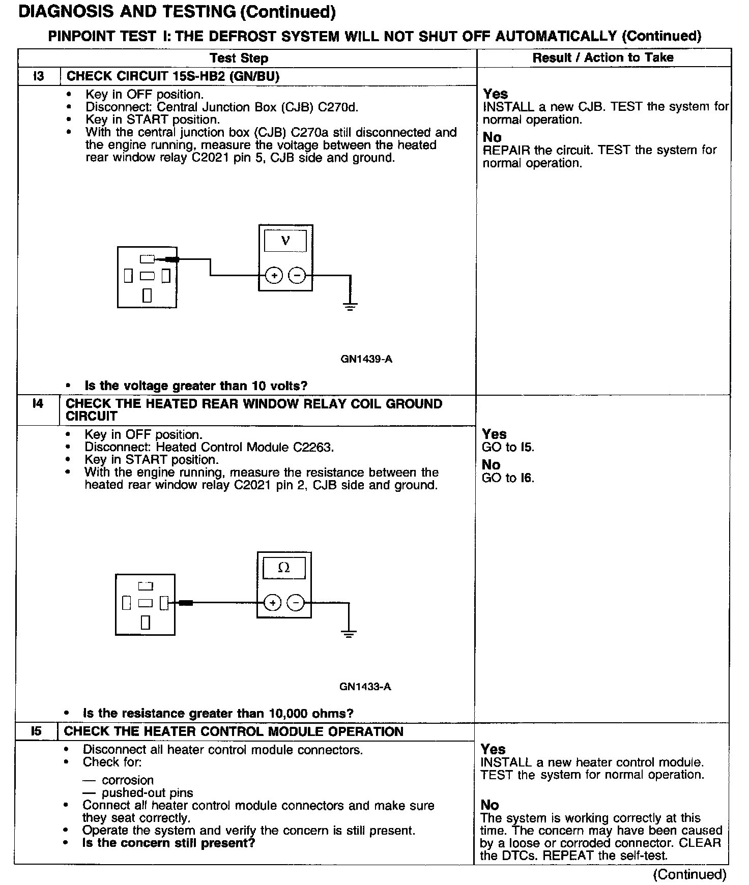 PINPOINT TEST I: THE DEFROST SYSTEM WILL NOT SHUT OFF AUTOMATICALLY