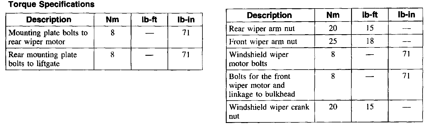 Torque Specifications: