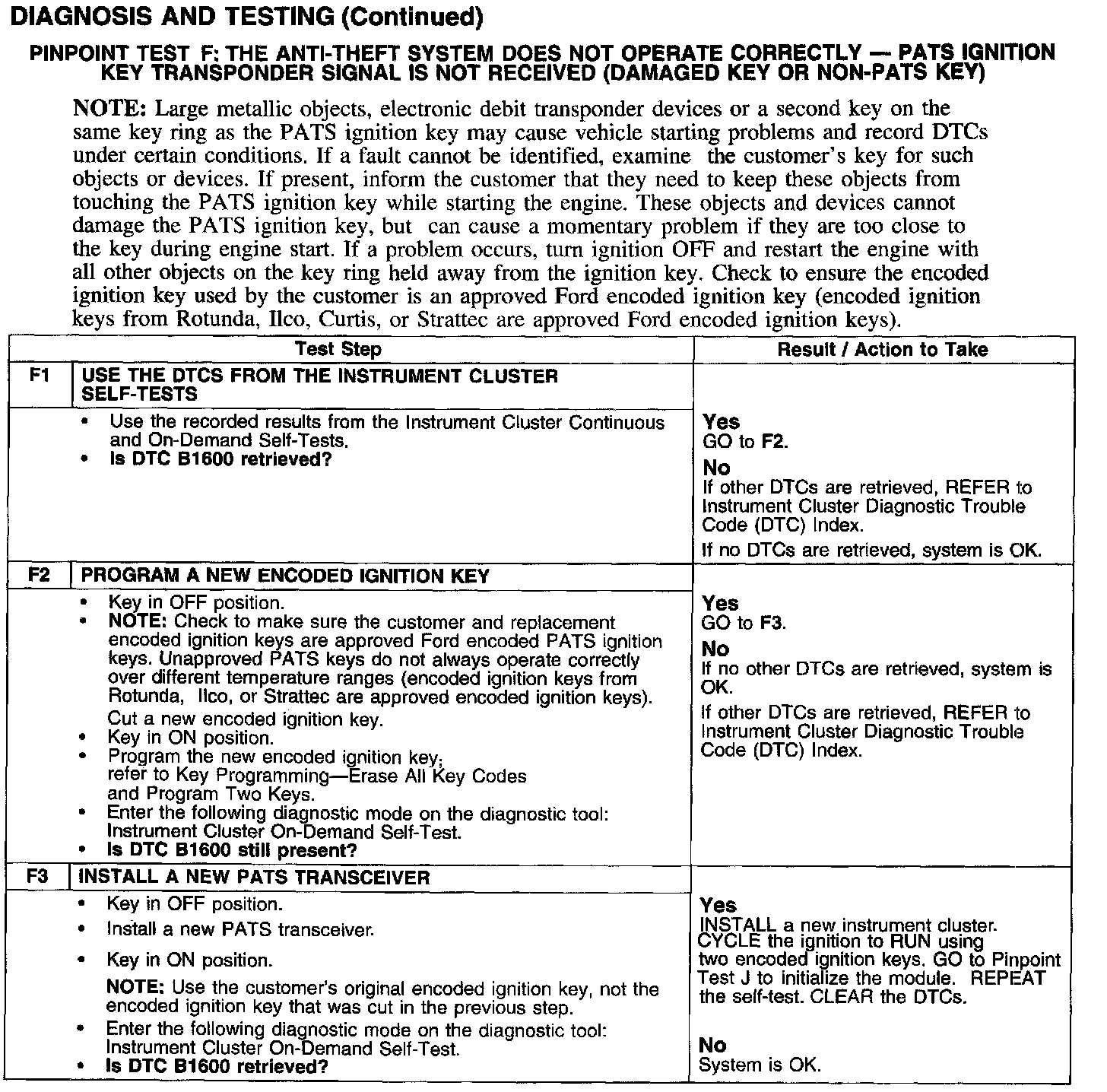 PINPOINT TEST F: THE ANTI-THEFT SYSTEM DOES NOT OPERATE CORRECTLY - PATS IGNITION KEY TRANSPONDER SIGNAL IS NOT RECEIVED (DAMAGED KEY OR NON-PATS KEY)