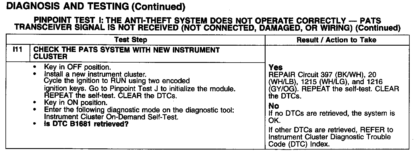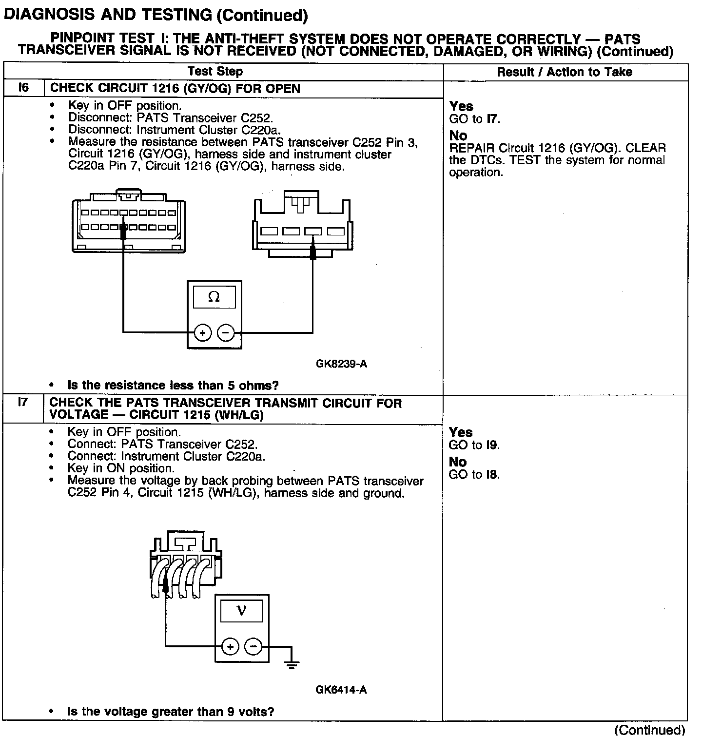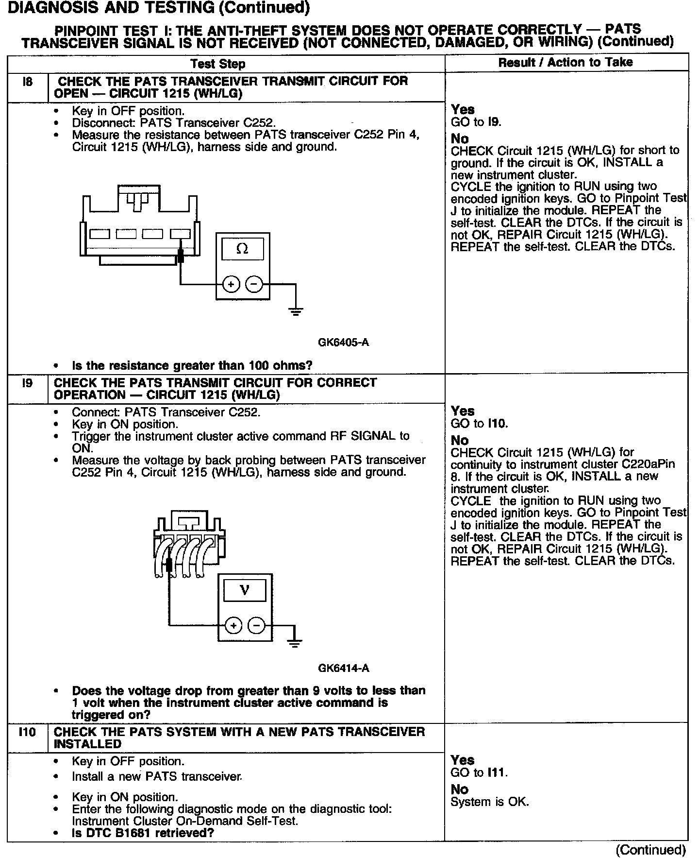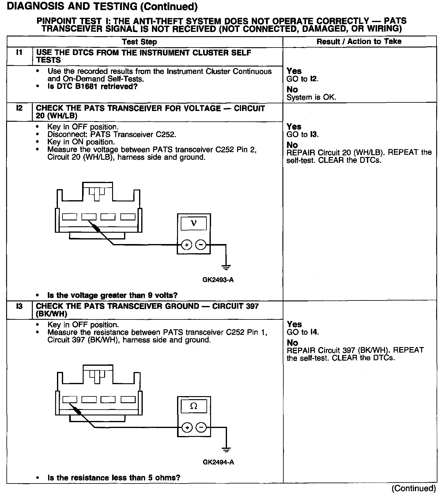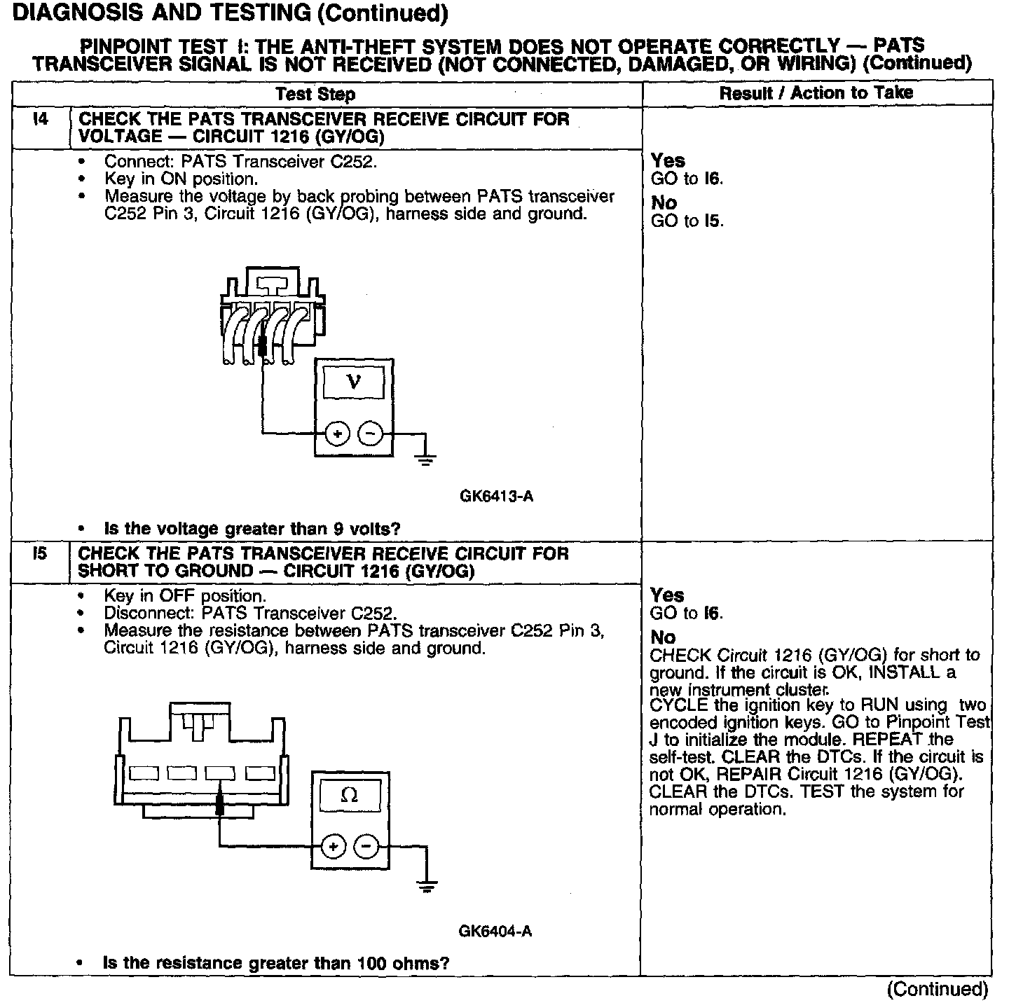 PINPOINT TEST I: THE ANTI-THEFT SYSTEM DOES NOT OPERATE CORRECTLY - PATS TRANSCEIVER SIGNAL IS NOT RECEIVED (NOT CONNECTED, DAMAGED, OR WIRING)