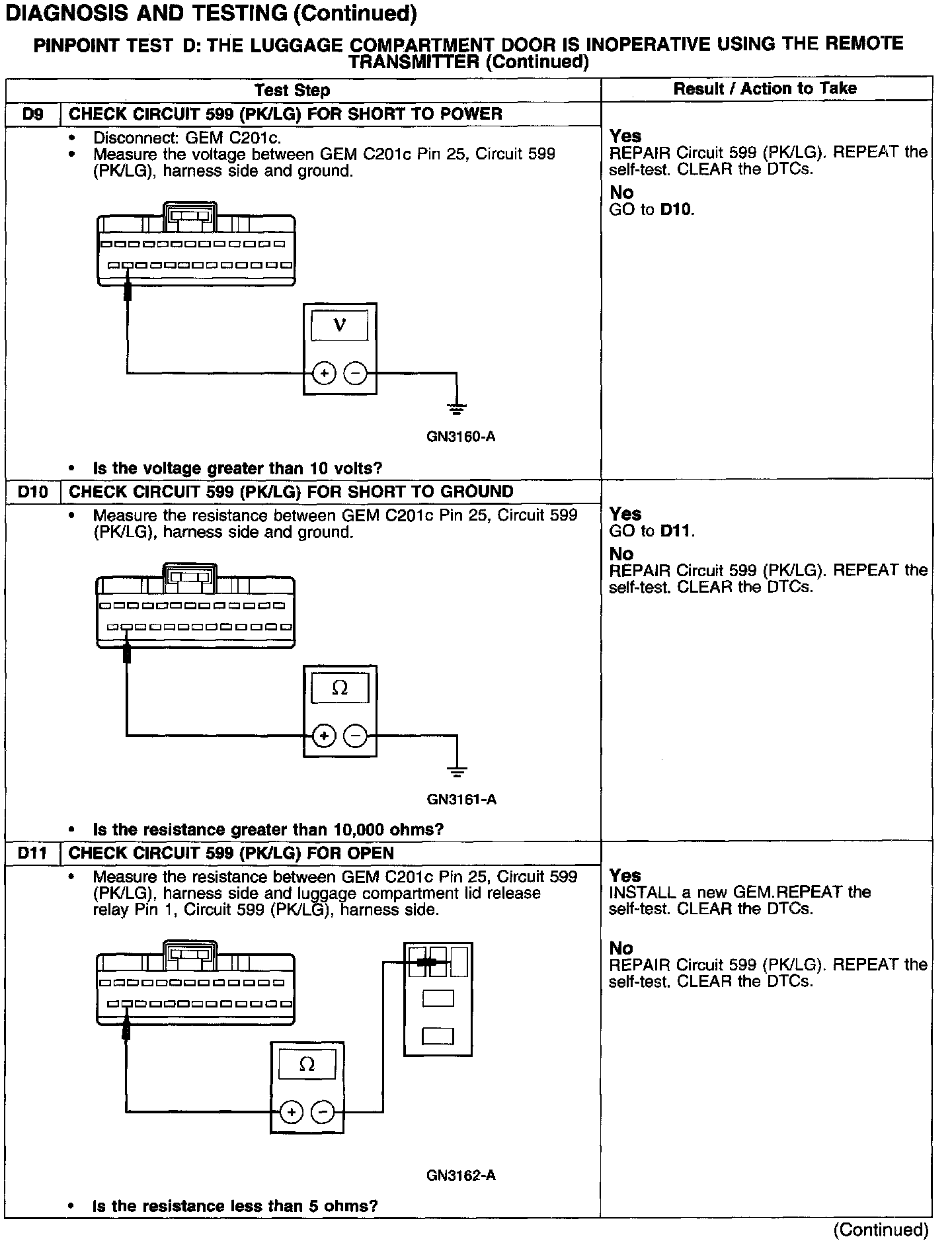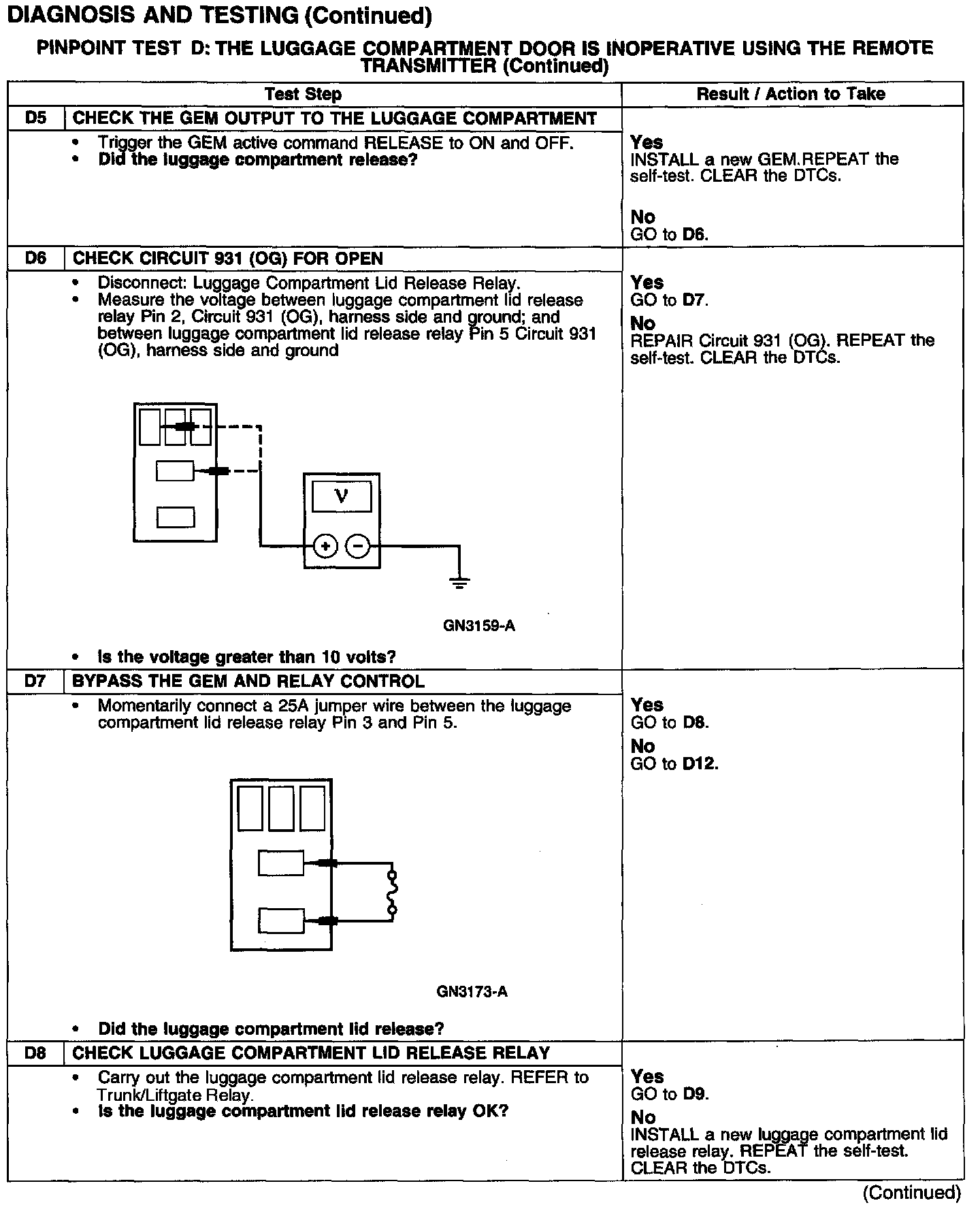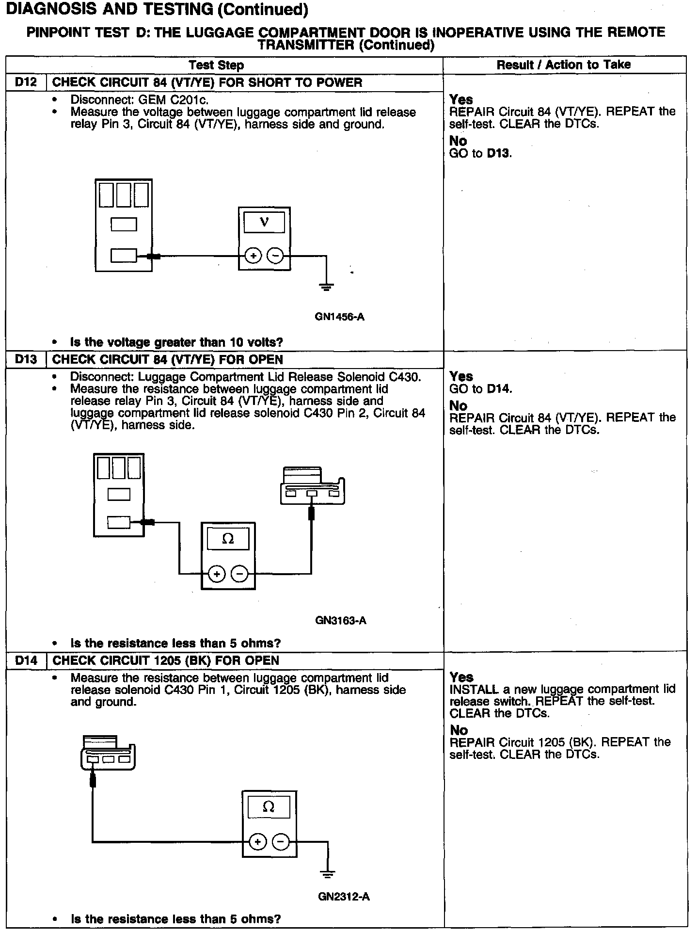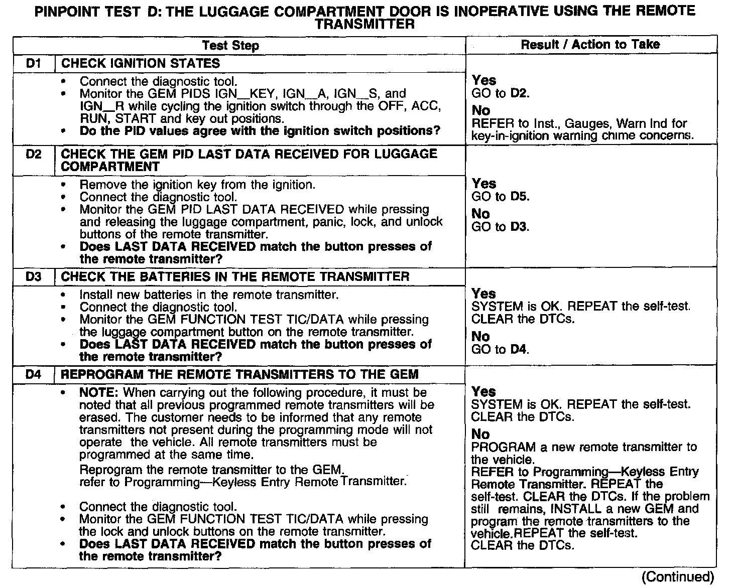 PINPOINT TEST D: THE LUGGAGE COMPARTMENT DOOR IS INOPERATIVE USING THE REMOTE TRANSMITTER