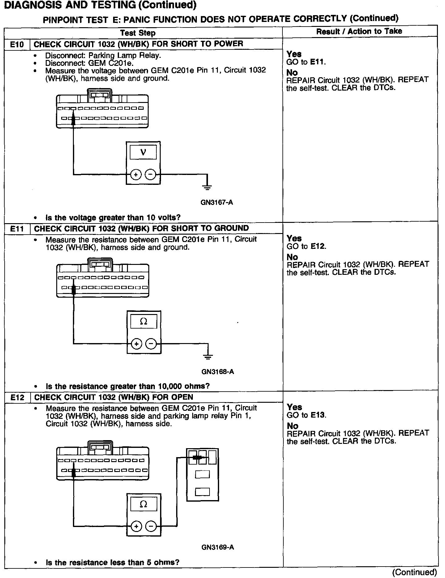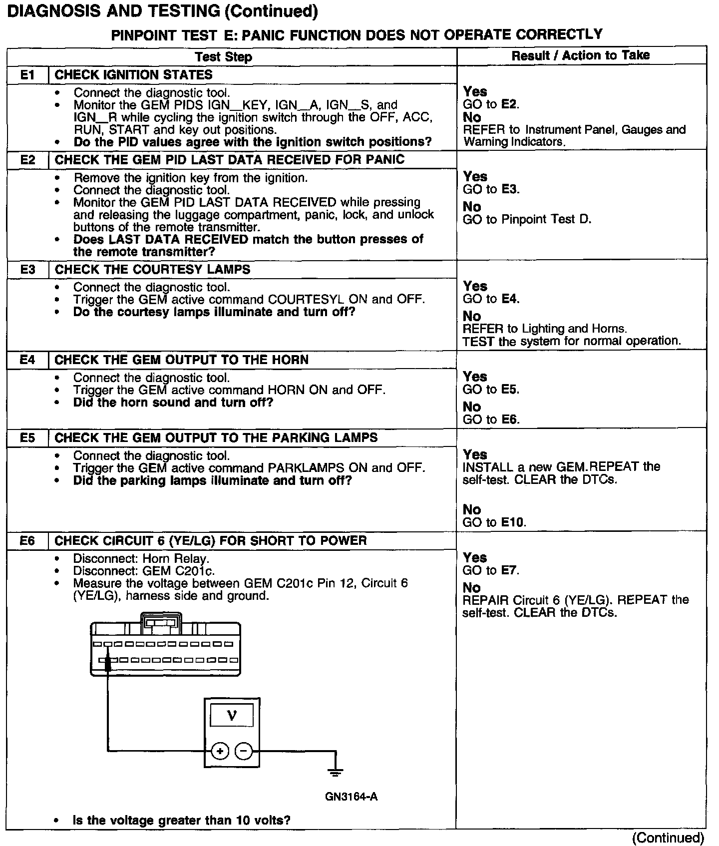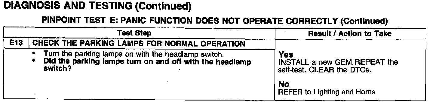 PINPOINT TEST E: PANIC FUNCTION DOES NOT OPERATE CORRECTLY