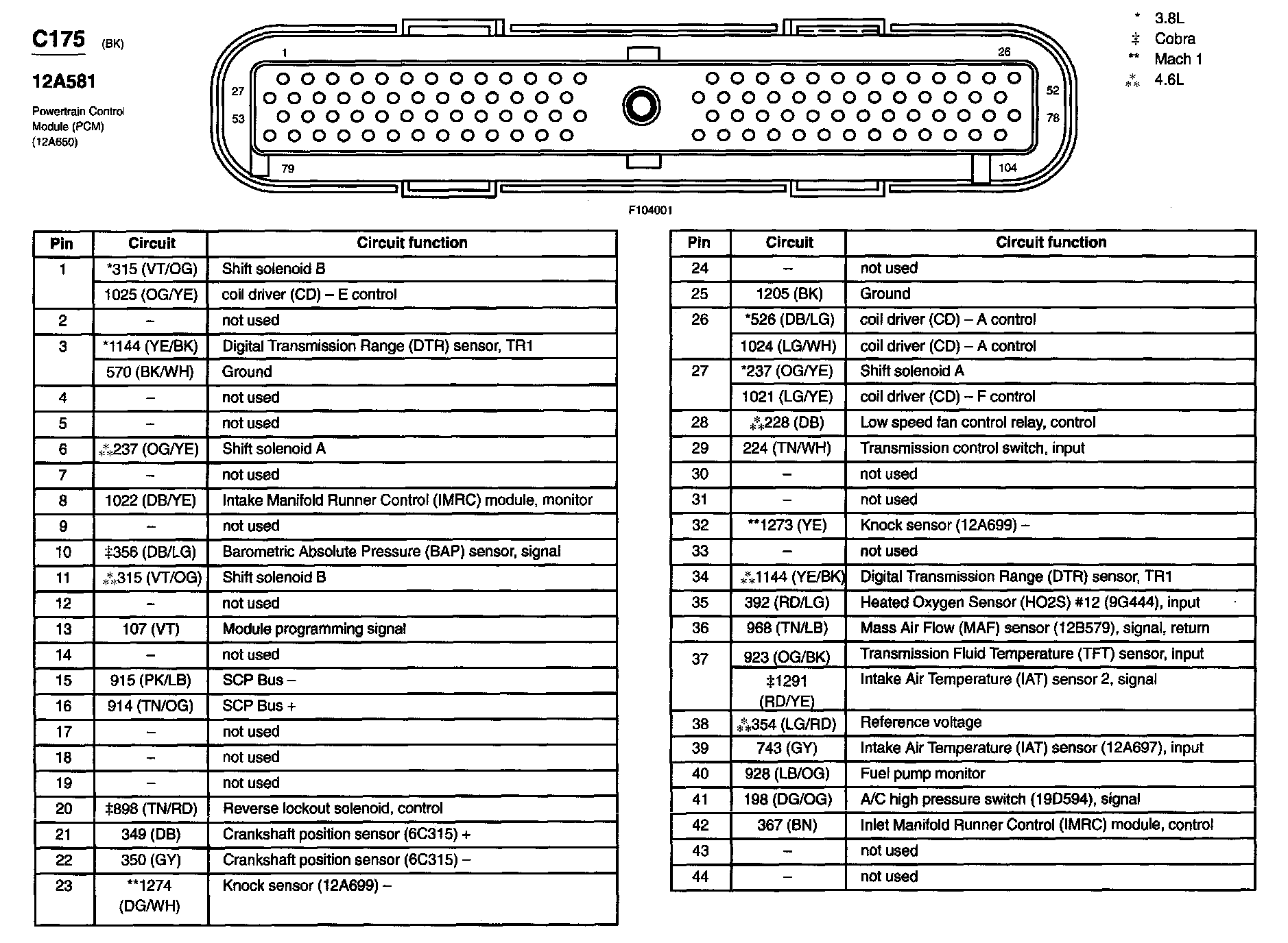 Mustang V6-3.8L VIN 4