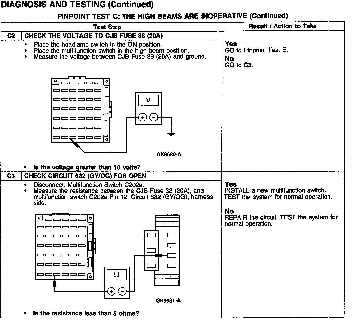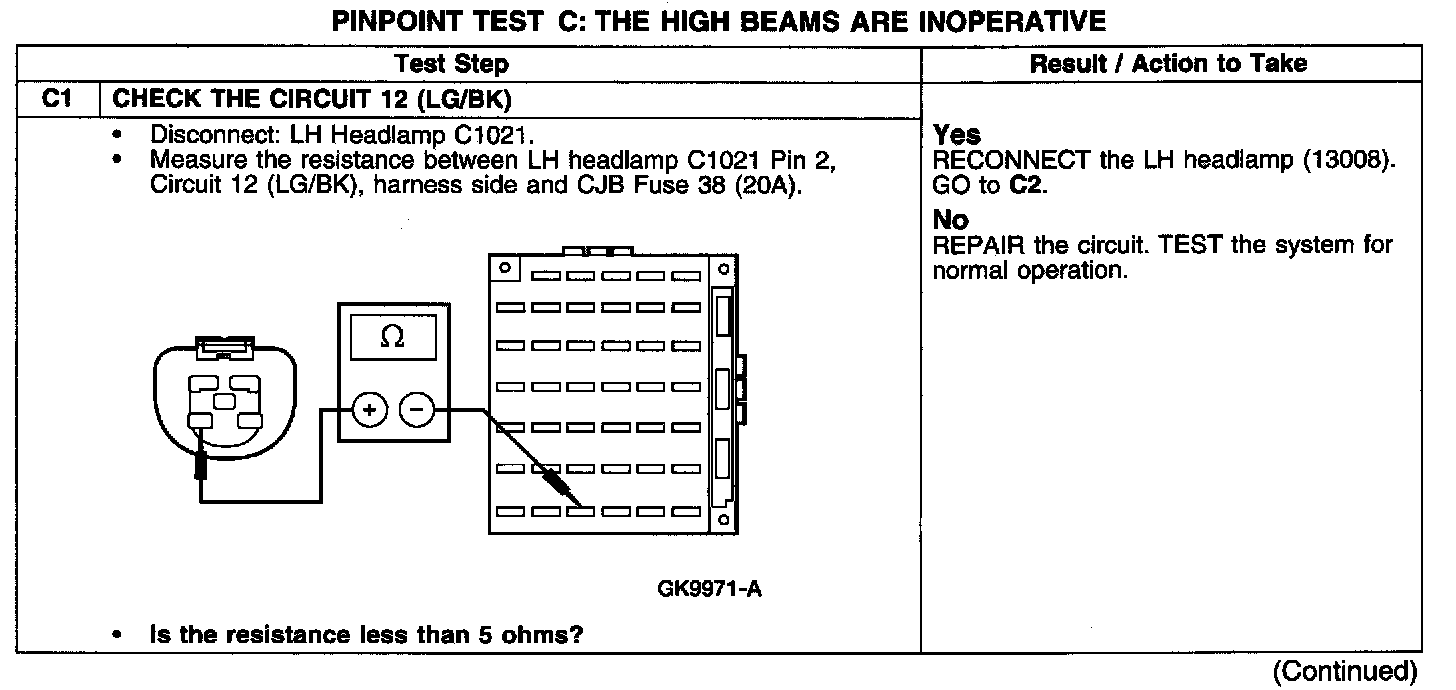 PINPOINT TEST C: THE HIGH BEAMS ARE INOPERATIVE