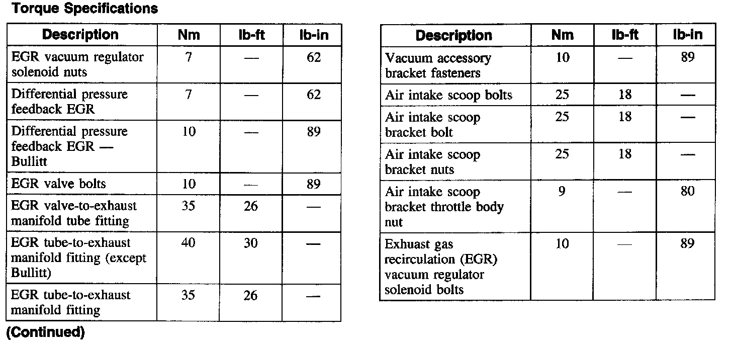 Torque Specifications: