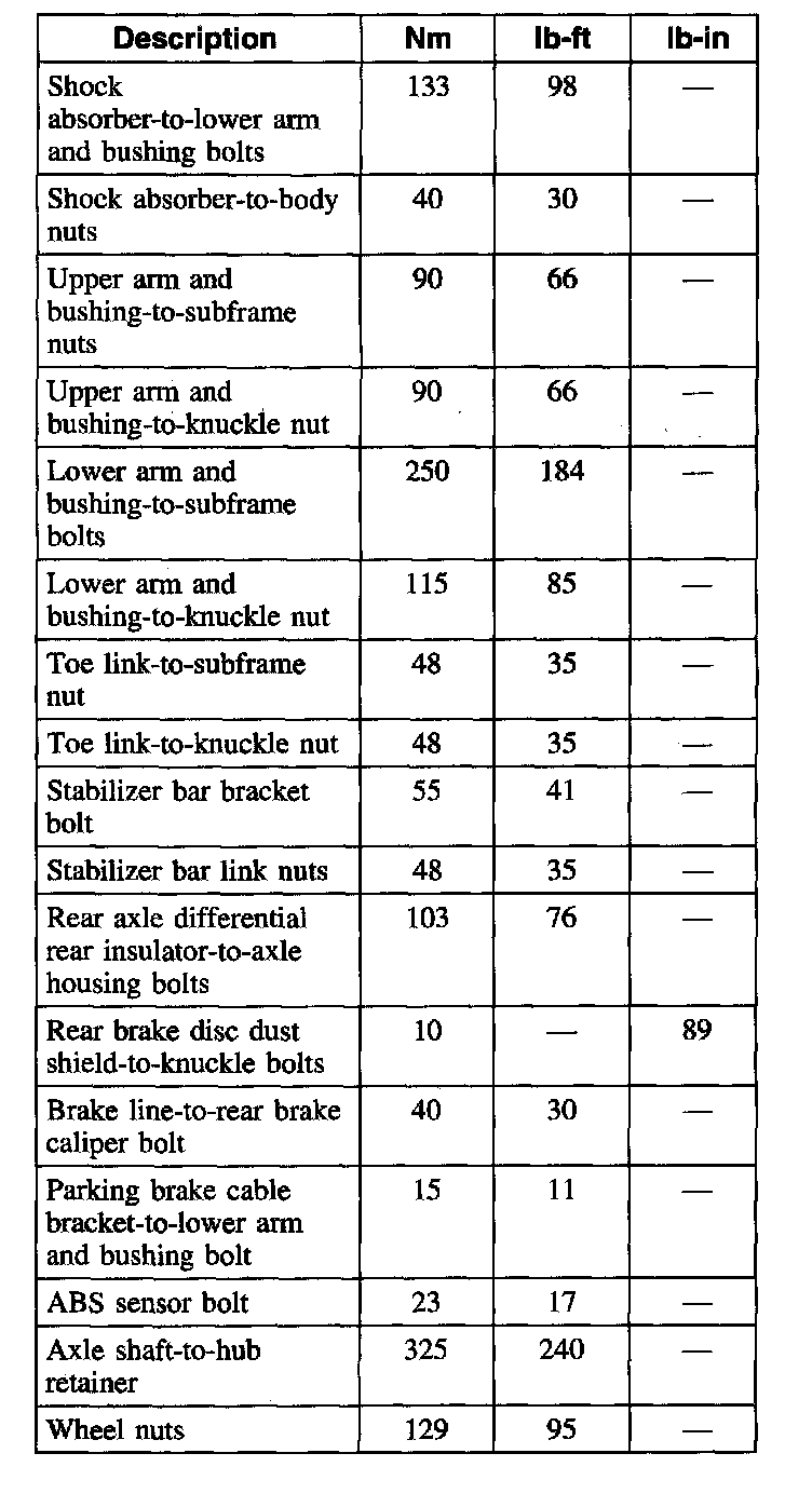 Torque Specifications