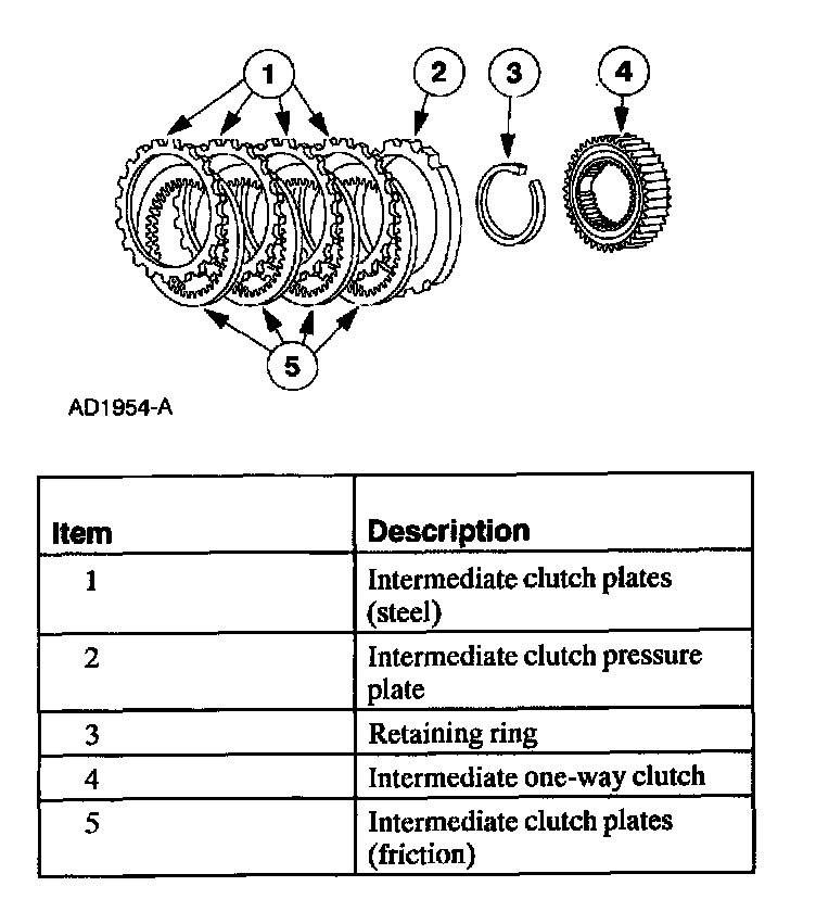 The intermediate clutch works with the intermediate one-way clutch to hold the reverse sun gear stationary in second gear. The intermediate clutch remains applied in third and fourth gears, but does not transmit power.