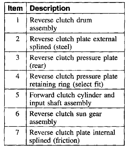The forward clutch couples the forward clutch cylinder and input shaft to the forward sun gear in first, second, and third gears. The forward clutch is not applied in fourth gear.