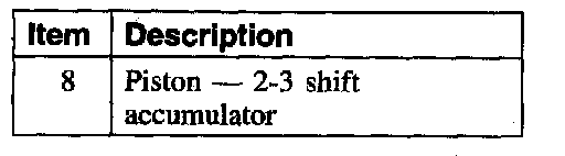 ^ 2-3 Accumulator - The 2-3 accumulator is used to soften the 2-3 shift by absorbing some of the direct clutch pressure. Forward clutch pressure is applied to the top side of the 2-3 accumulator piston, holding the piston down until clutch pressure is high enough to overcome it. The middle section of the piston is exhausted to the sump.