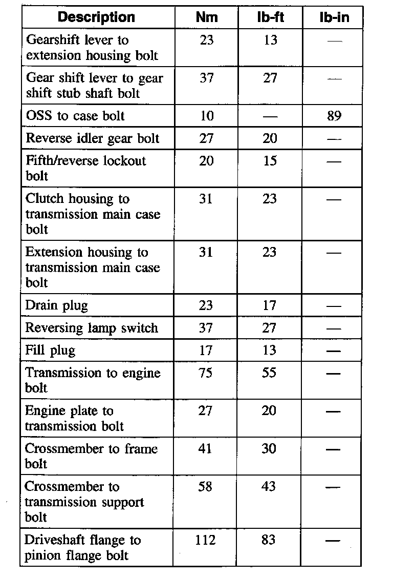 Torque Specifications
