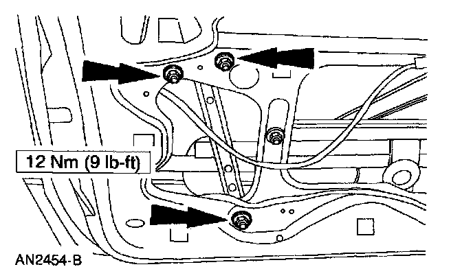 4. Remove the nuts and the door glass run.