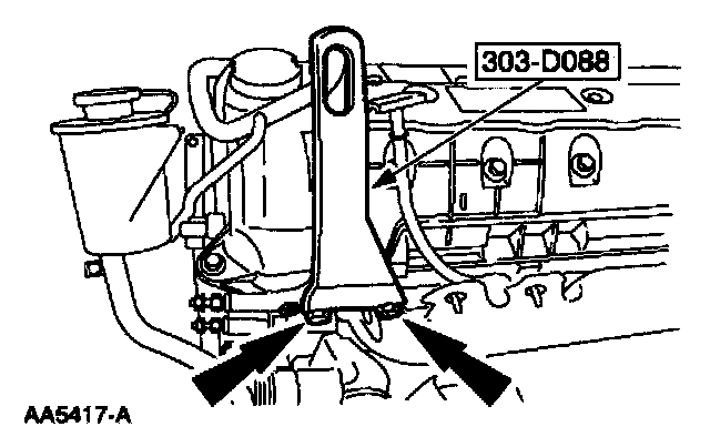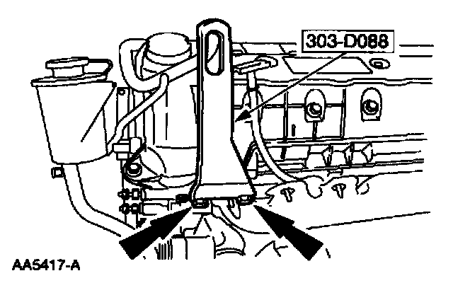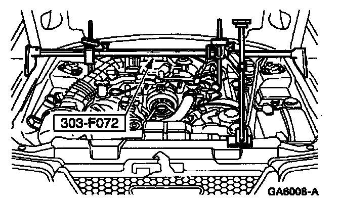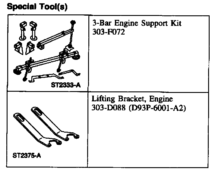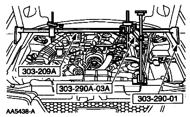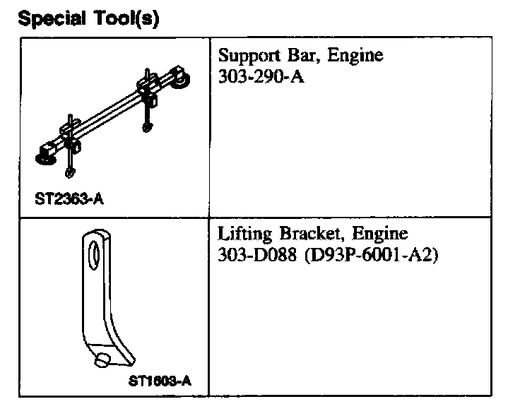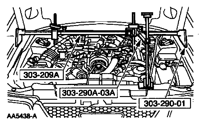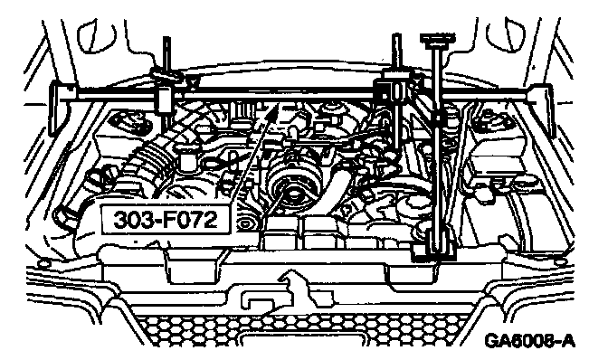 11. Using the special tool, raise and support the engine.