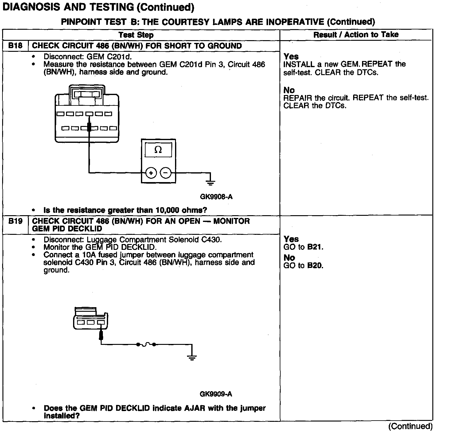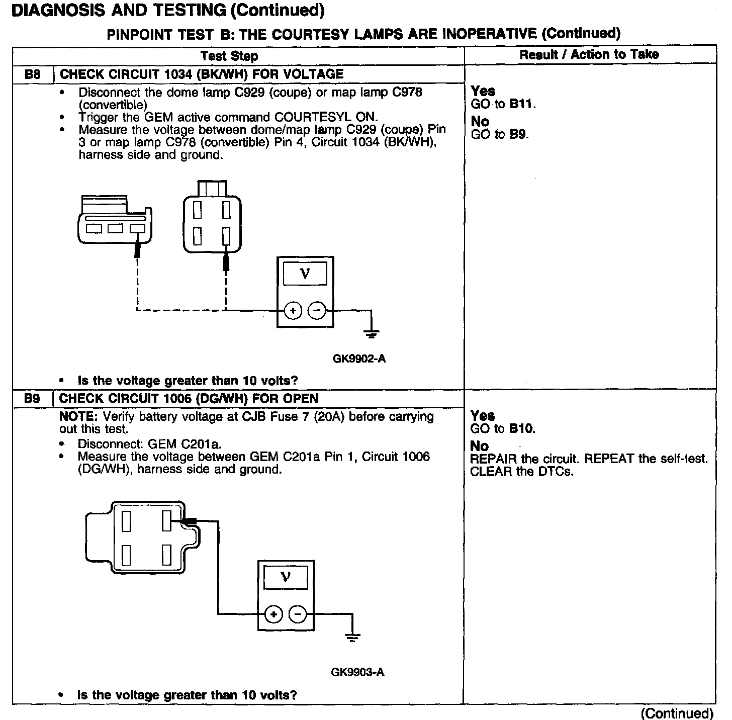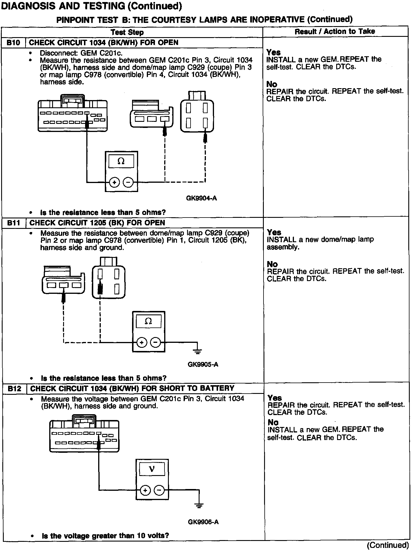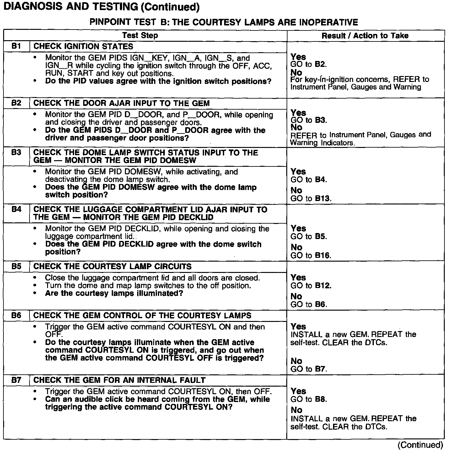 PINPOINT TEST B: THE COURTESY LAMPS ARE INOPERATIVE