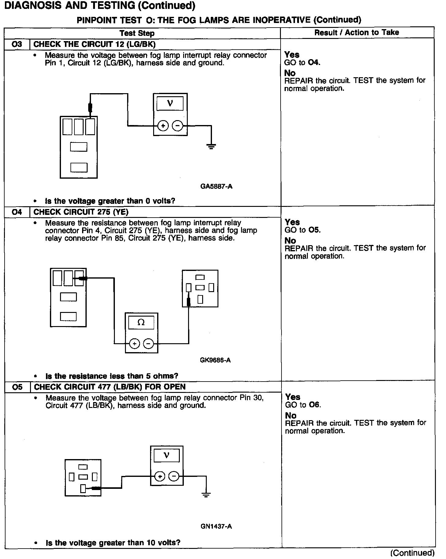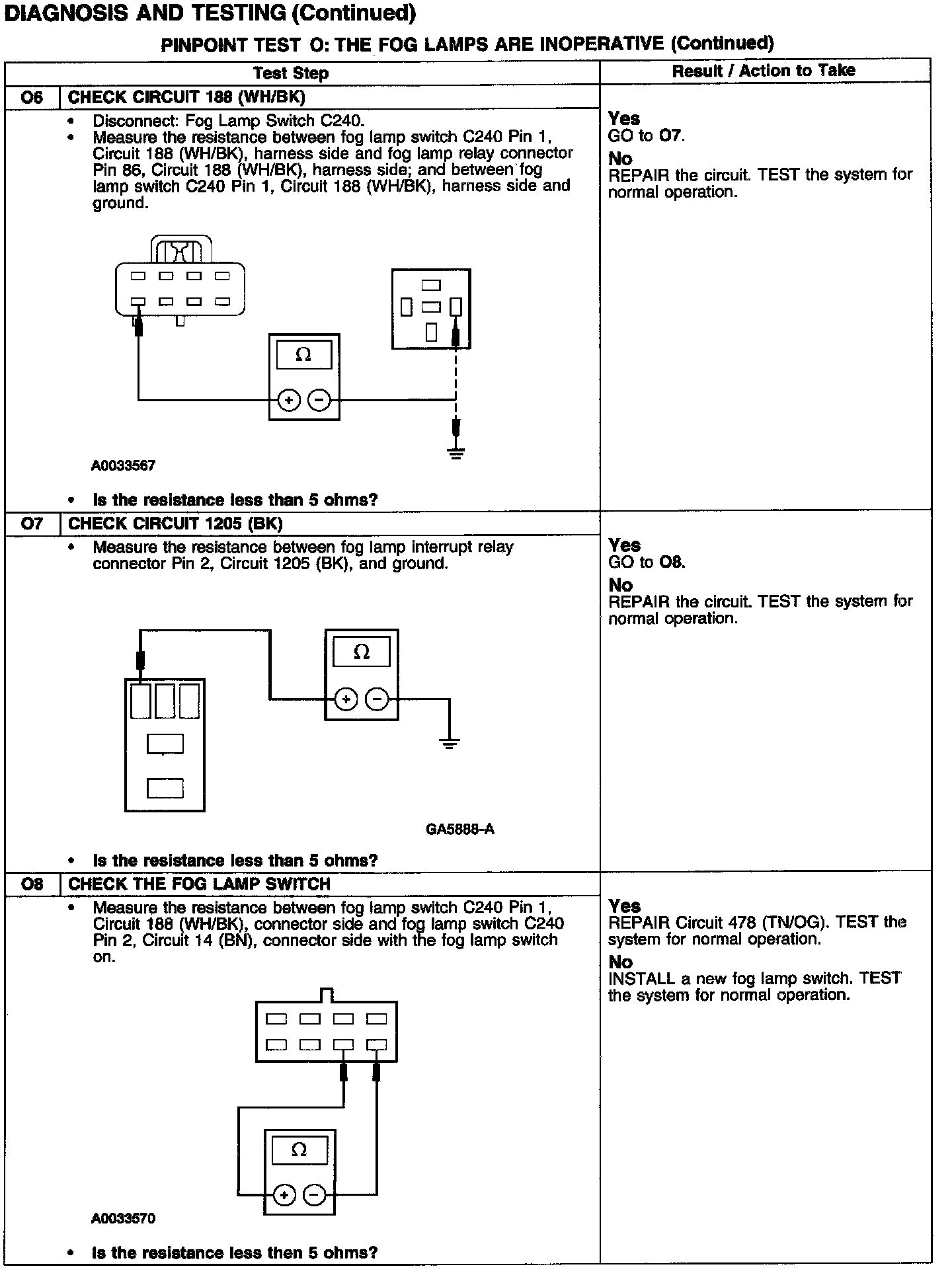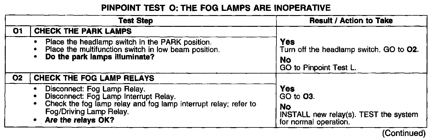 PINPOINT TEST O: THE FOG LAMPS ARE INOPERATIVE