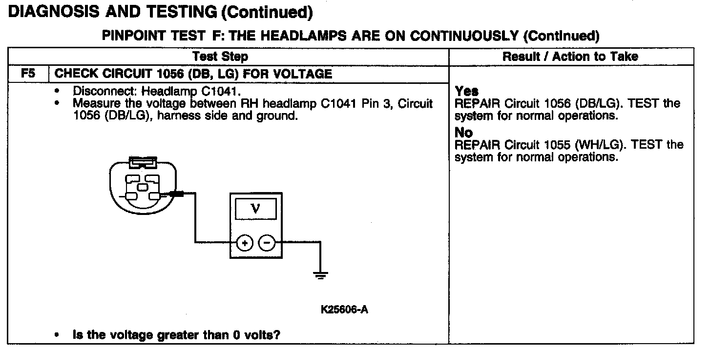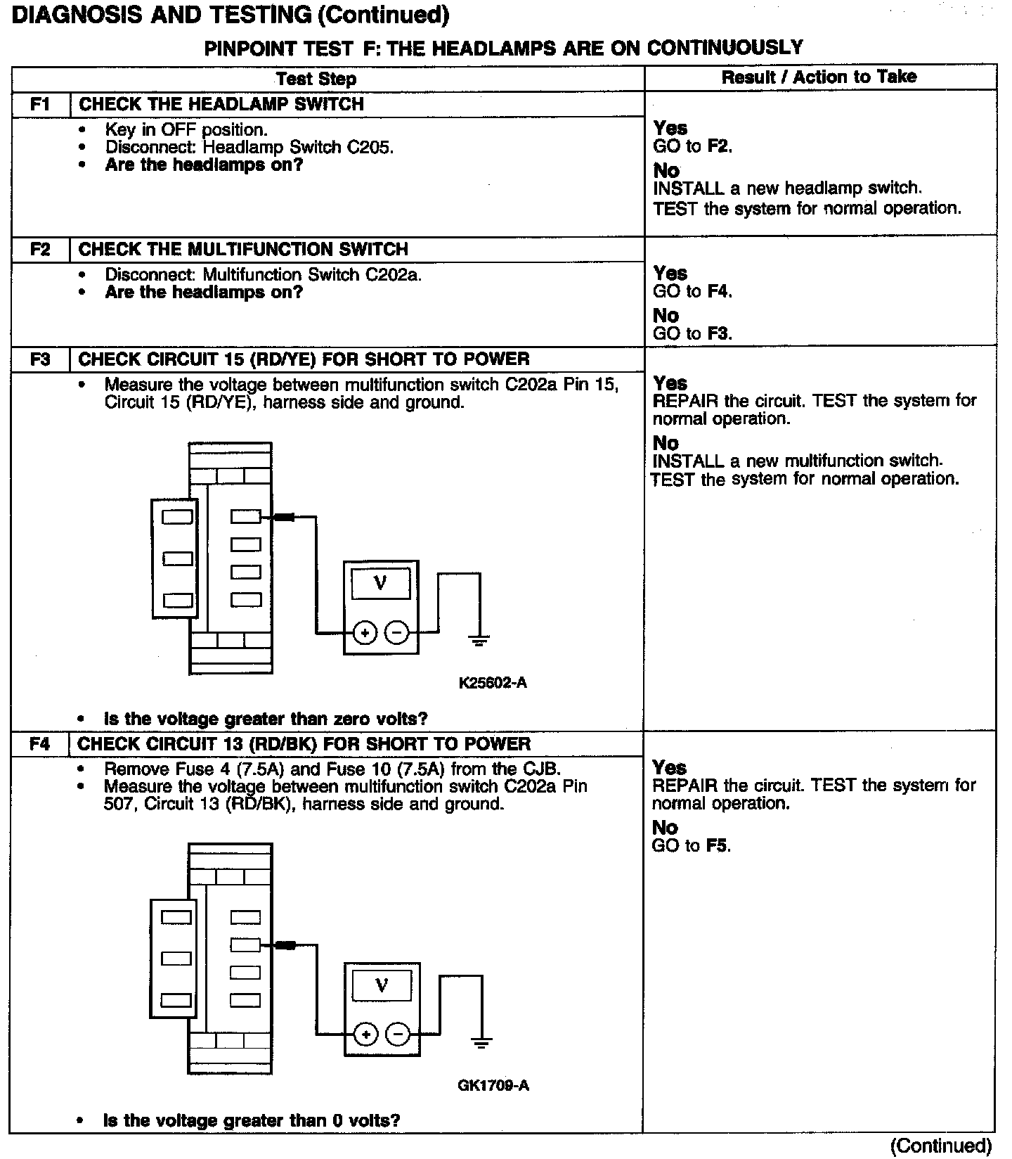 PINPOINT TEST F: THE HEADLAMPS ARE ON CONTINUOUSLY