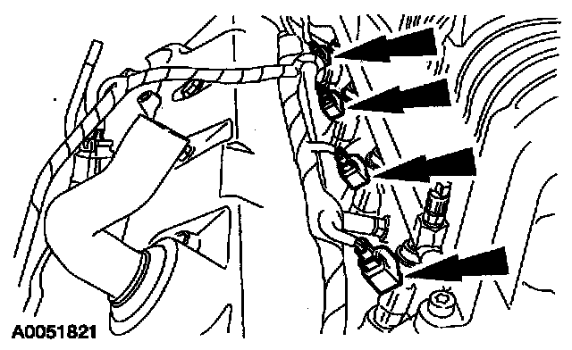 9. Disconnect the eight fuel injector electrical connectors.