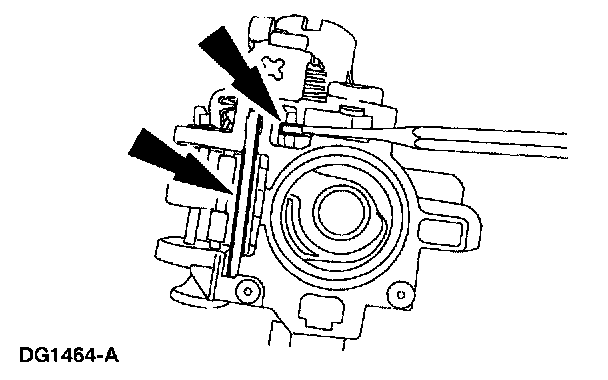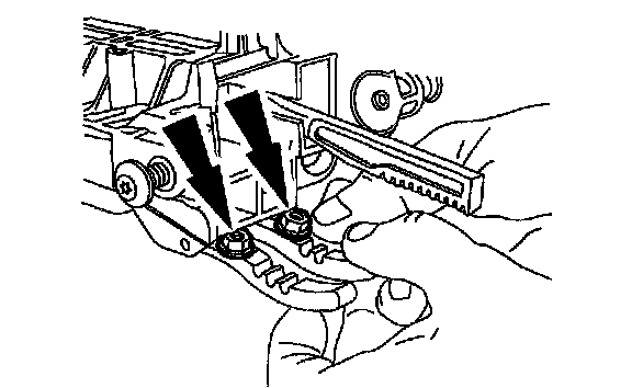 1 Pry up on the lock actuator lever (LH) using a shop fabricated tool.