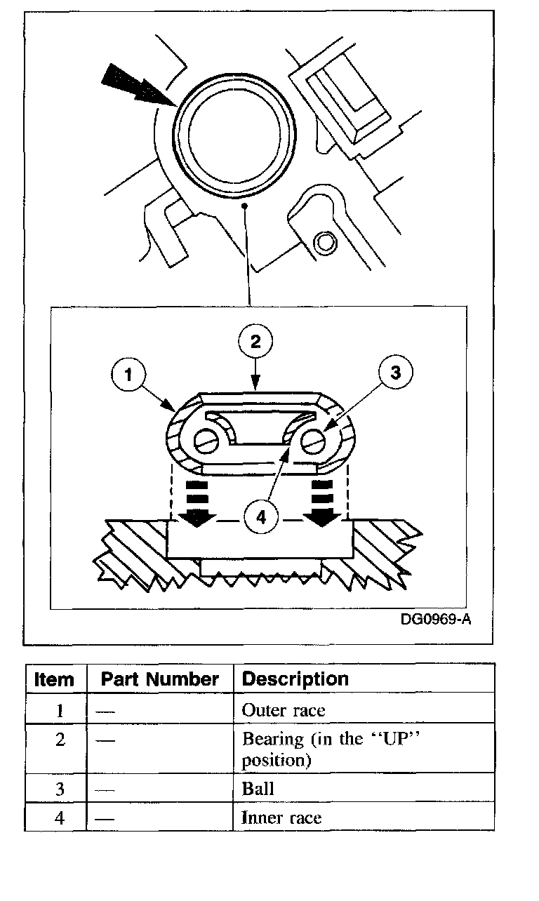10. CAUTION: Install the steering column bearing so that the inner race is visible when installed.
