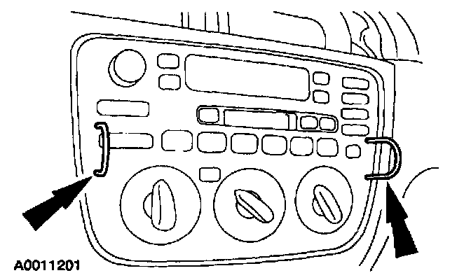 2. Using the radio removing tool, pull the Integrated Control Panel (ICP) out of the instrument panel.