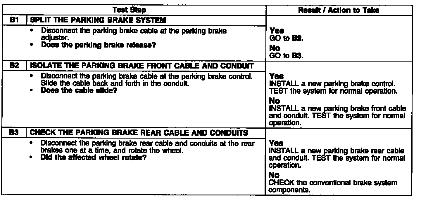 PINPOINT TEST B: PARKING BRAKE WILL NOT RELEASE