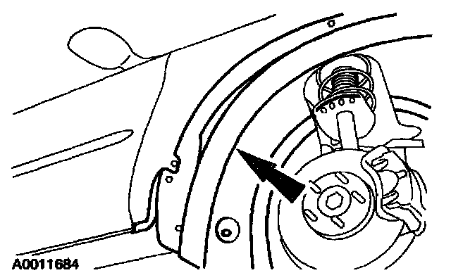 1. Remove the right front tire and wheel assembly.