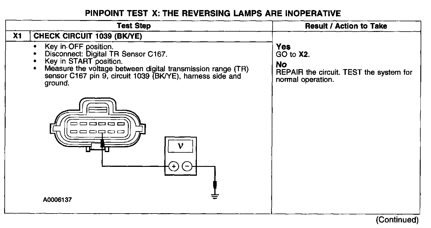 PINPOINT TEST X: THE REVERSING LAMPS ARE INOPERATIVE
