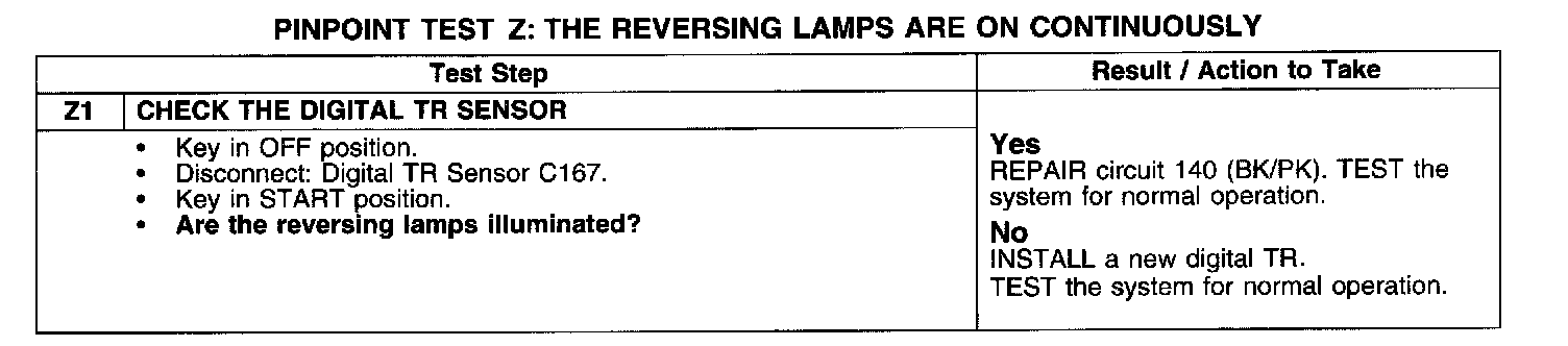 PINPOINT TEST Z: THE REVERSING LAMPS ARE ON CONTINUOUSLY