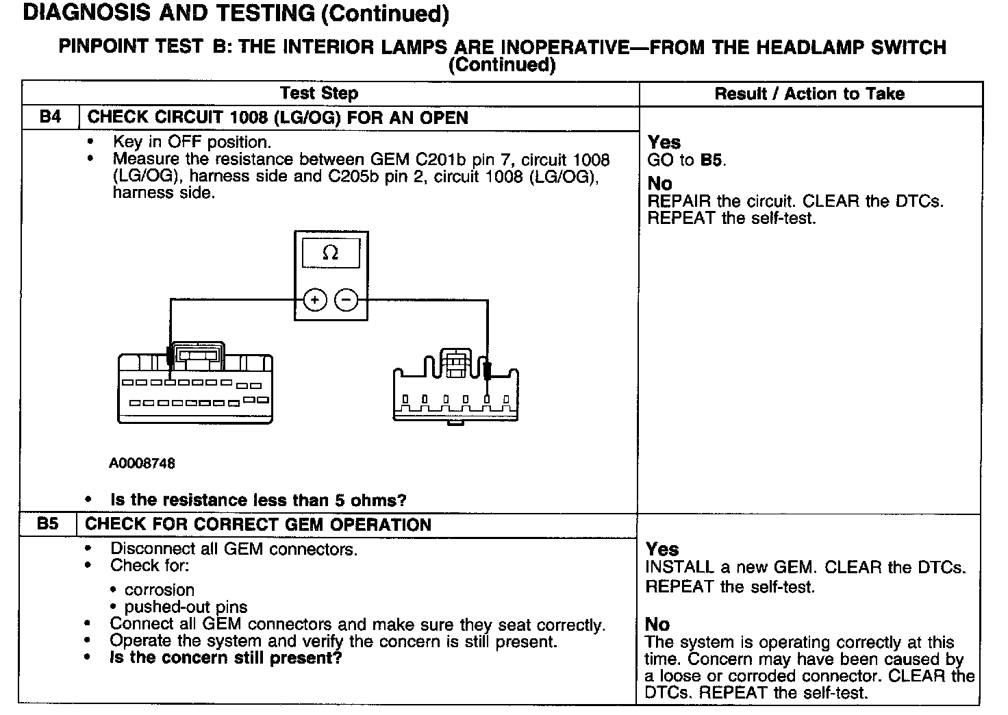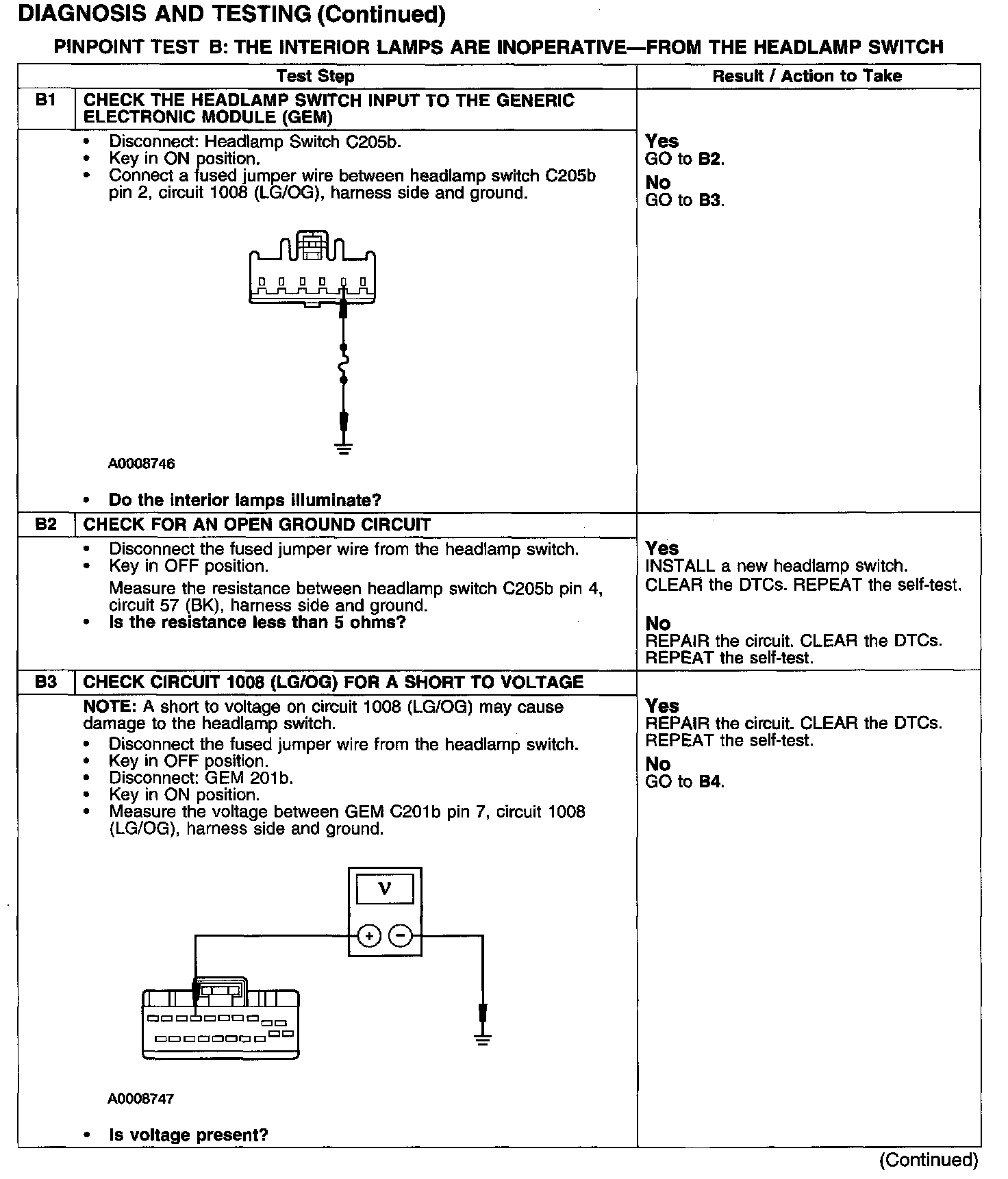 PINPOINT TEST B: THE INTERIOR LAMPS ARE INOPERATIVE-FROM THE