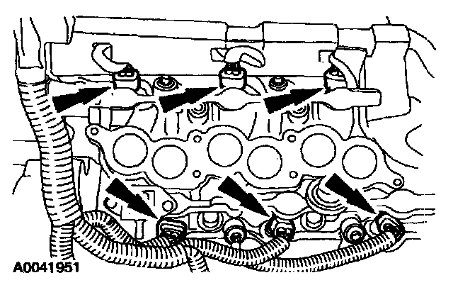 NOTE: Remove the fuel injection supply manifold and the fuel injectors as an assembly.
