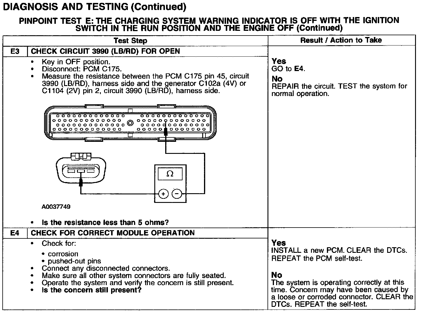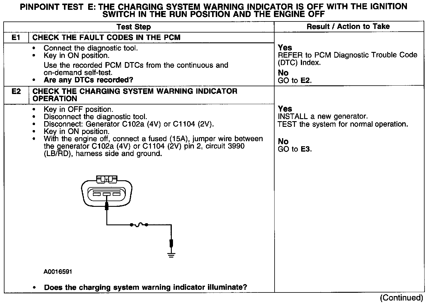Test E: Warning Indicator Off W/Ign Switch In RUN/Engine OFF