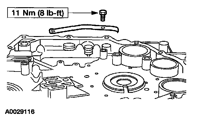 10. NOTE: The use of petroleum jelly will hold the accumulator piston shafts in place while assembling the chain cover.