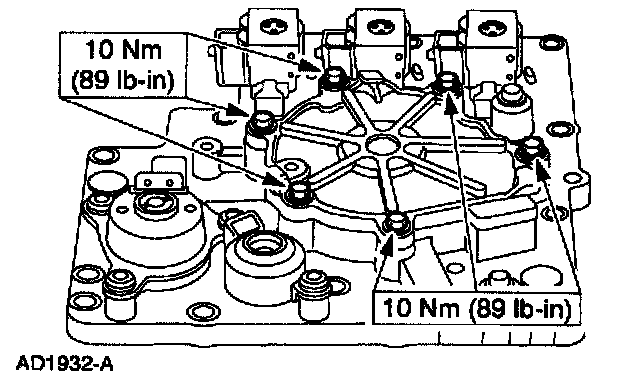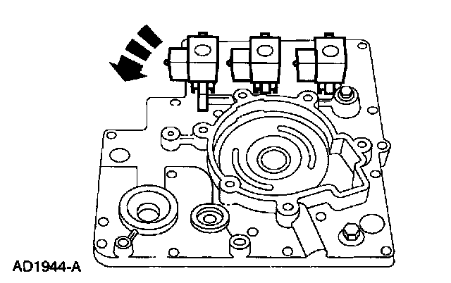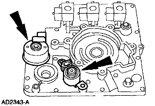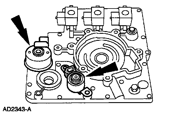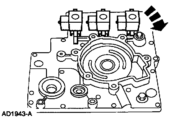 Install new O-rings and install the shift solenoids by pressing down and rotating them until they lock in place.