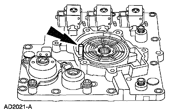 17. NOTE: The shift solenoids are interchangeable. Take note of the shift solenoid connector orientation.