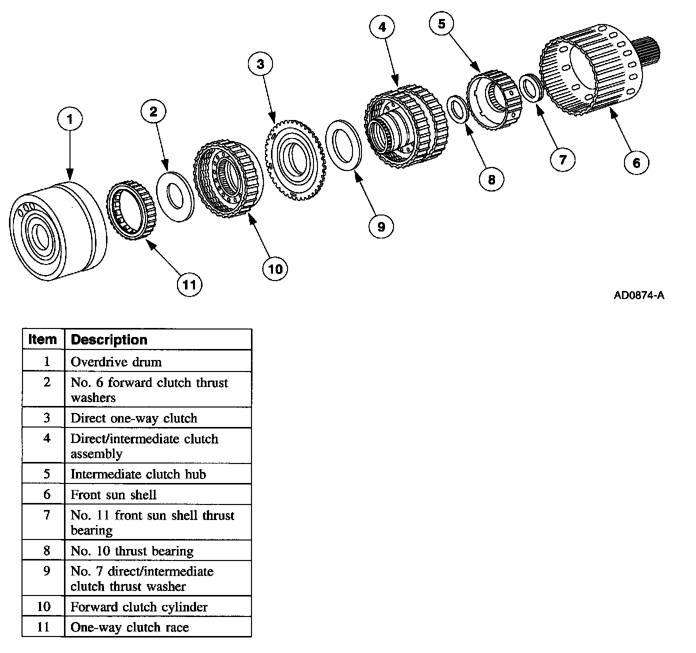 7. Install the rear clutch hub and No. 10 thrust bearing.