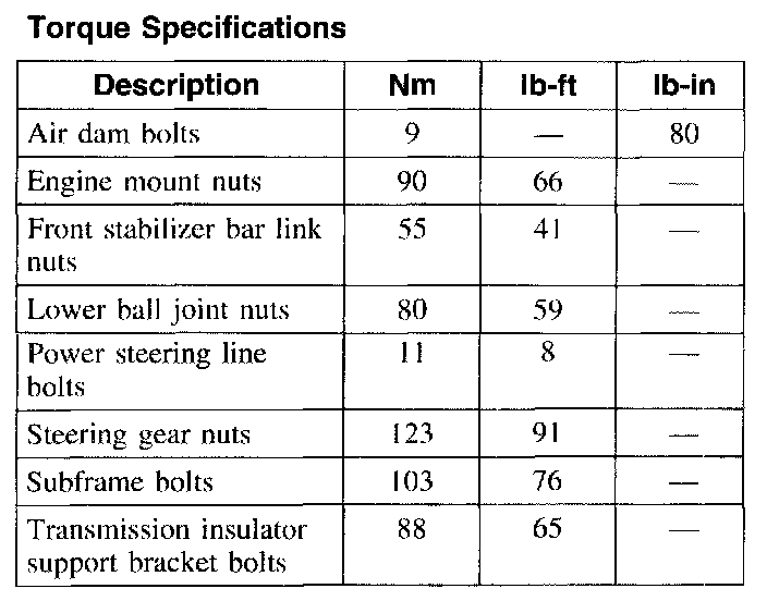 Torque Specifications: