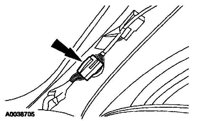 4. Located on the RH A-pillar, disconnect the headliner wiring harness electrical connector.