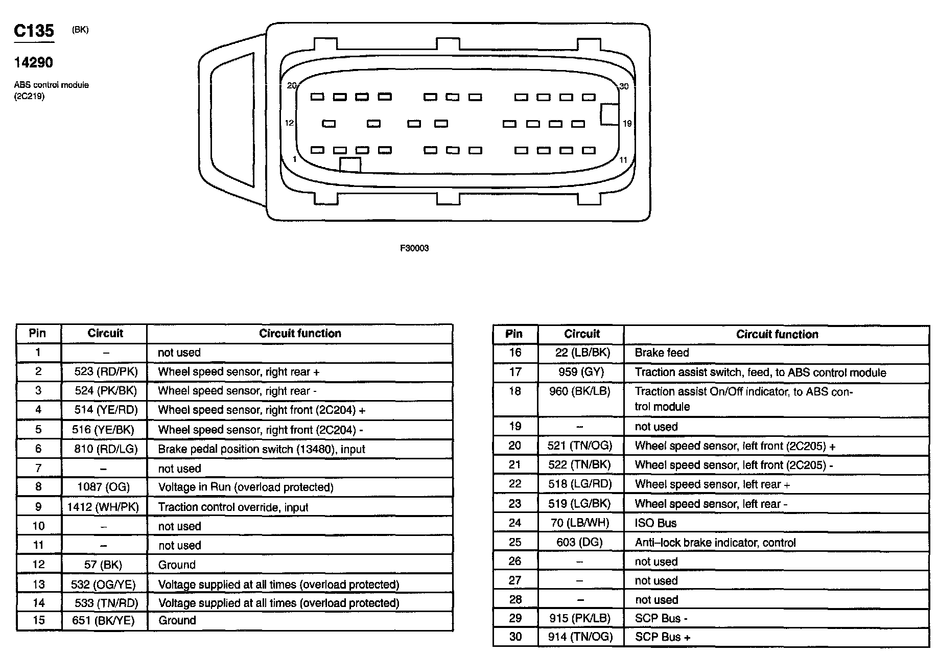 Taurus V6-3.0L VIN U