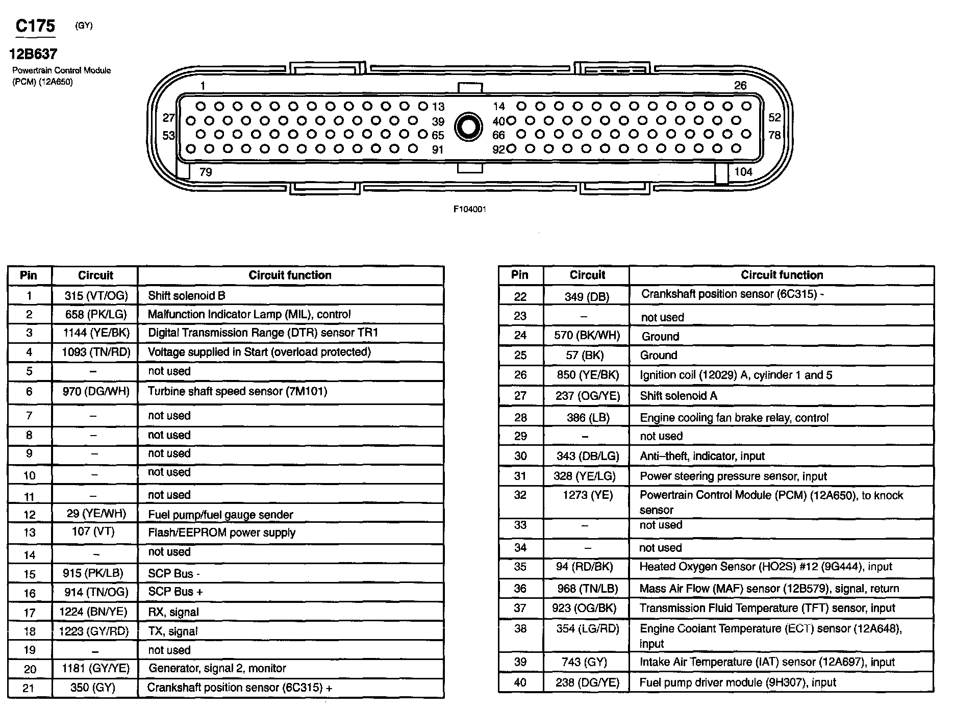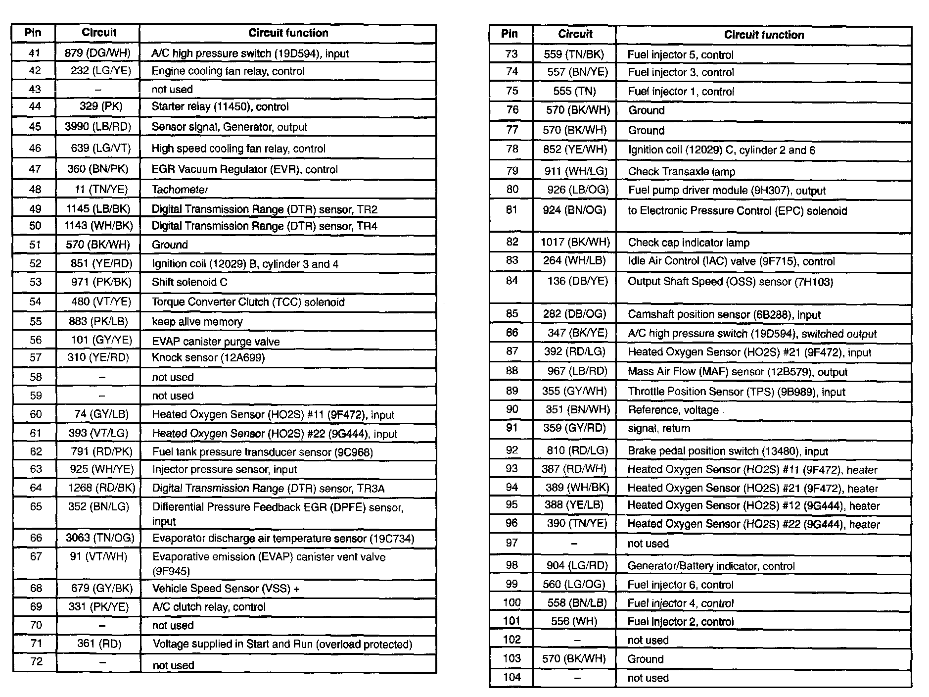 Taurus V6-3.0L VIN U