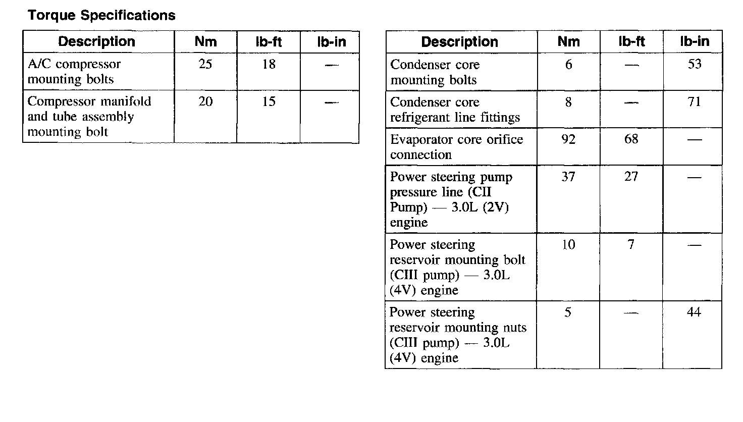 Torque Specifications