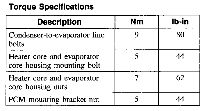 Torque Specifications: