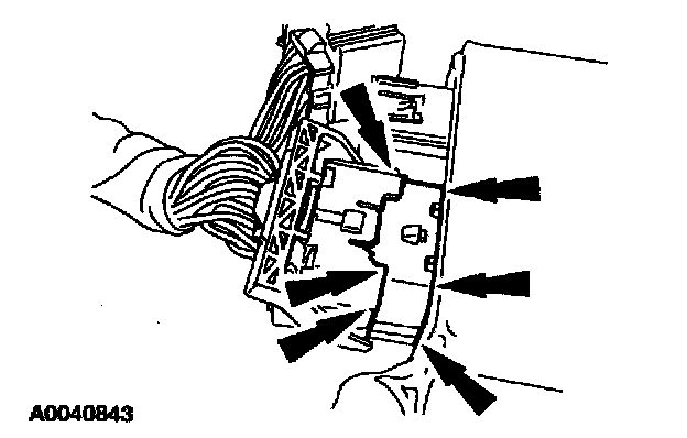 WARNING: The restraints control module (RCM) orientation is critical for correct air bag supplemental restraint system (SRS) operation. If a vehicle equipped with an SRS system has been involved in a collision in which the center tunnel area has been damaged, inspect the mounting and bracket for deformation. If damaged, a new RCM must be installed whether or not the air bags have deployed. In addition, make sure the area of the RCM mounting is restored to its original condition.