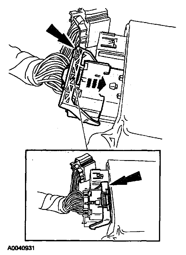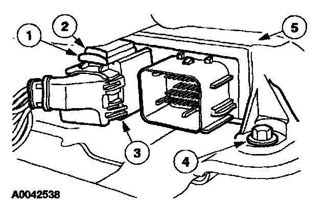 3. While releasing the retaining tab, pull out and disconnect the small RCM electrical connector.