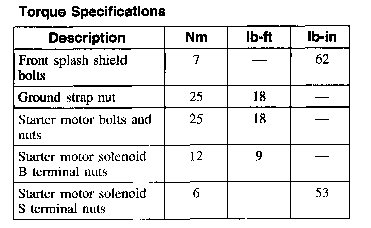 Torque Specifications: