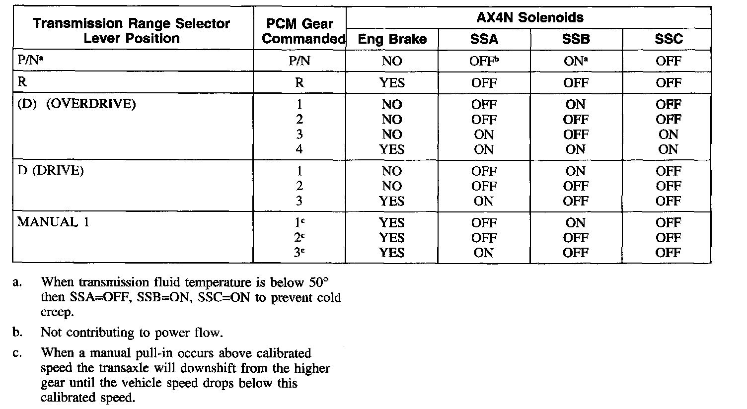 Solenoid Operation Chart
